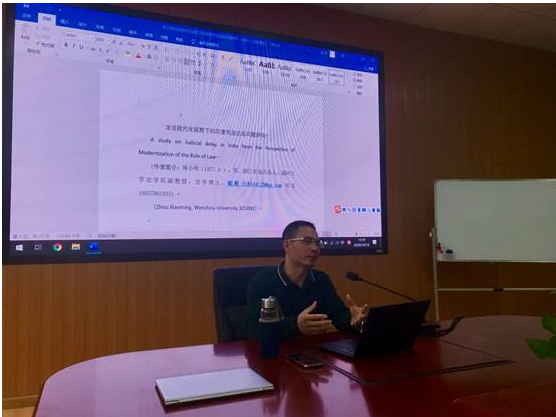 10月14日下午,罗山法学研习社第四期邀请看片狂人 副教授周小明博士在北校区2-103开展了题为《法治现代化视野下印度司法迟延问题》的学术分享会。副院长缪心毫及看片狂人 师生们参加了本次讲座,研讨会由柯宇航老师主持。
