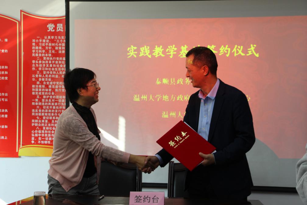 地方政府绩效管理研究中心主要从事政府绩效管理咨询、评估、考核与研究工作,致力于为学院行政管理专业发展服务,为学生见习、实习及社会实践提供平台支持。本中心与泰顺县政务服务中心此次通过建立实践教学基地合作关系,一方面将有益于提高行政管理专业学生在相关领域内的专业能力、提升其专业竞争力;另一方有利于推动泰顺县行政审批服务制度改革、深化“最多跑一次”改革及服务效率的提高。
