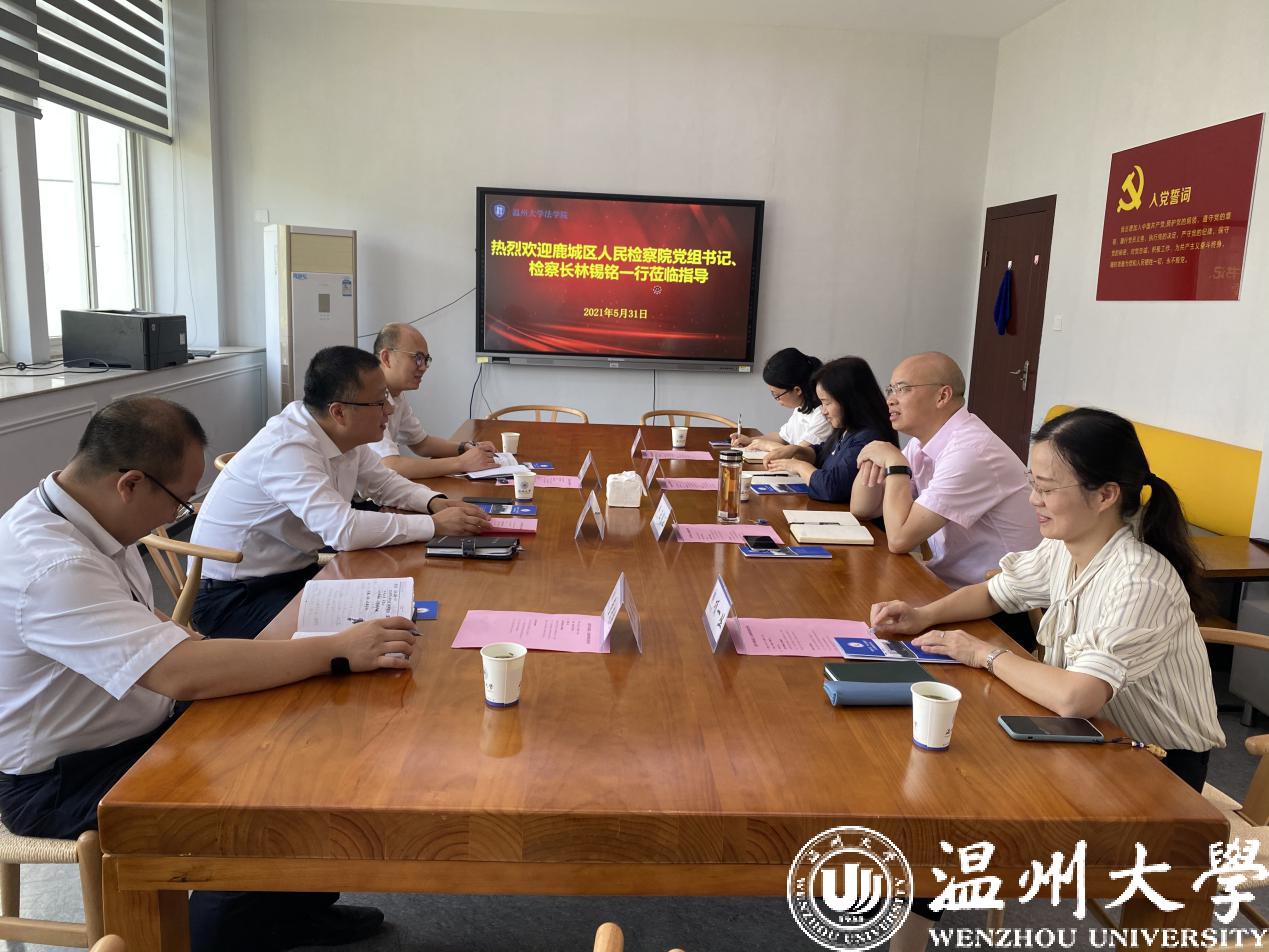 5月31日上午,鹿城区人民检察院党组书记、检察长林锡铭一行来看片狂人 调研座谈,王宗正院长、院长事务助理兼法律系主任何平等出席会议。