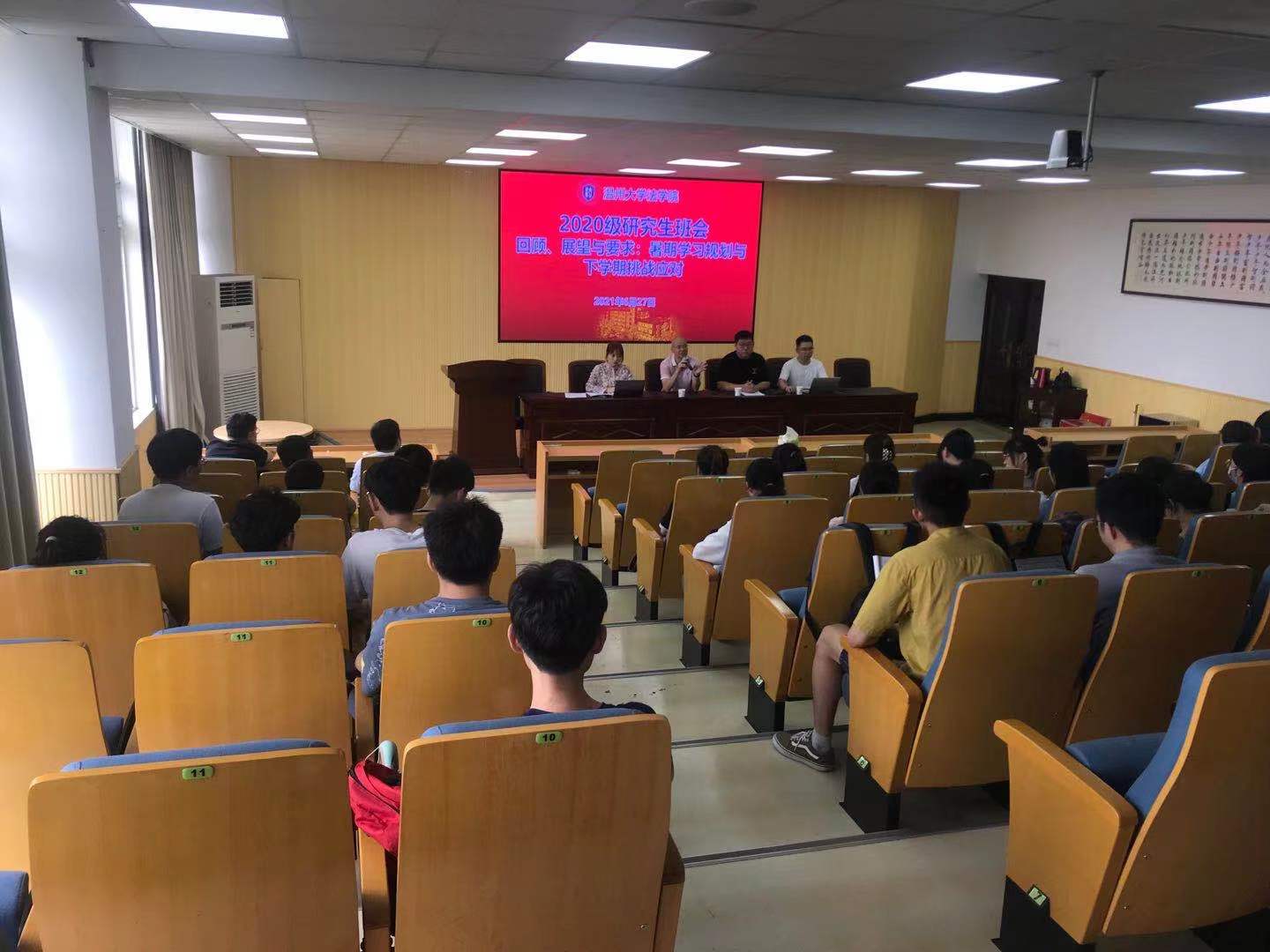 白驹过隙,时光荏苒,一年的研究生学习生活即将接近尾声。回顾过去,展望未来,为提高研究生科研热情、解答学习疑惑、明确假期学习规划和任务,并为下学期的科研学习挑战做好准备,看片狂人 2020级研究生于2021年6月27日在301教室举行了以 “回顾、展望与要求:暑期学习规划与下学期挑战应对”为主题的班会。看片狂人 院长王宗正教授,2020级硕士研究生班主任、硕士研究生导师任江副教授、2020级硕士研究生辅导员白昌科老师,教学与科研秘书胡亚玲老师,以及全体2020级硕士研究生参加班会,会议由胡亚玲老师主持。