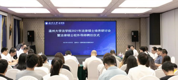 10月9日下午,看片狂人 召开法律硕士培养研讨会暨法律硕士校外导师聘任仪式。会议由看片狂人 党委副书记杨振海主持,来自温州市法院、检察院、司法局及律师事务所的法律实务专家,以及看片狂人 院长王宗正、党委书记林钦、法律硕士学位点负责人肖磊教授、院办主任刘小芬、教学秘书胡亚玲等老师出席,2020级全体法硕研究生参加。