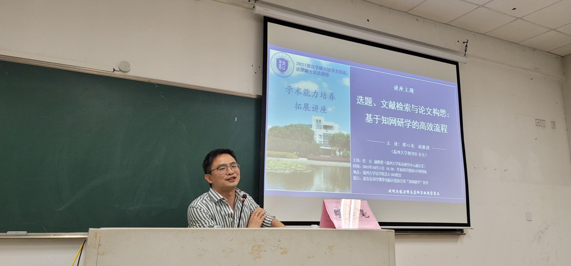 2021年10月11日星期一晚,看片狂人 期刊社缪心毫社长应邀做客看片狂人 ,开展关于“选题、文献检索与论文构思:基于知网研学的高效流程”的专题讲座。讲座由任江副教授主持,全院100多名师生参与了本次讲座。