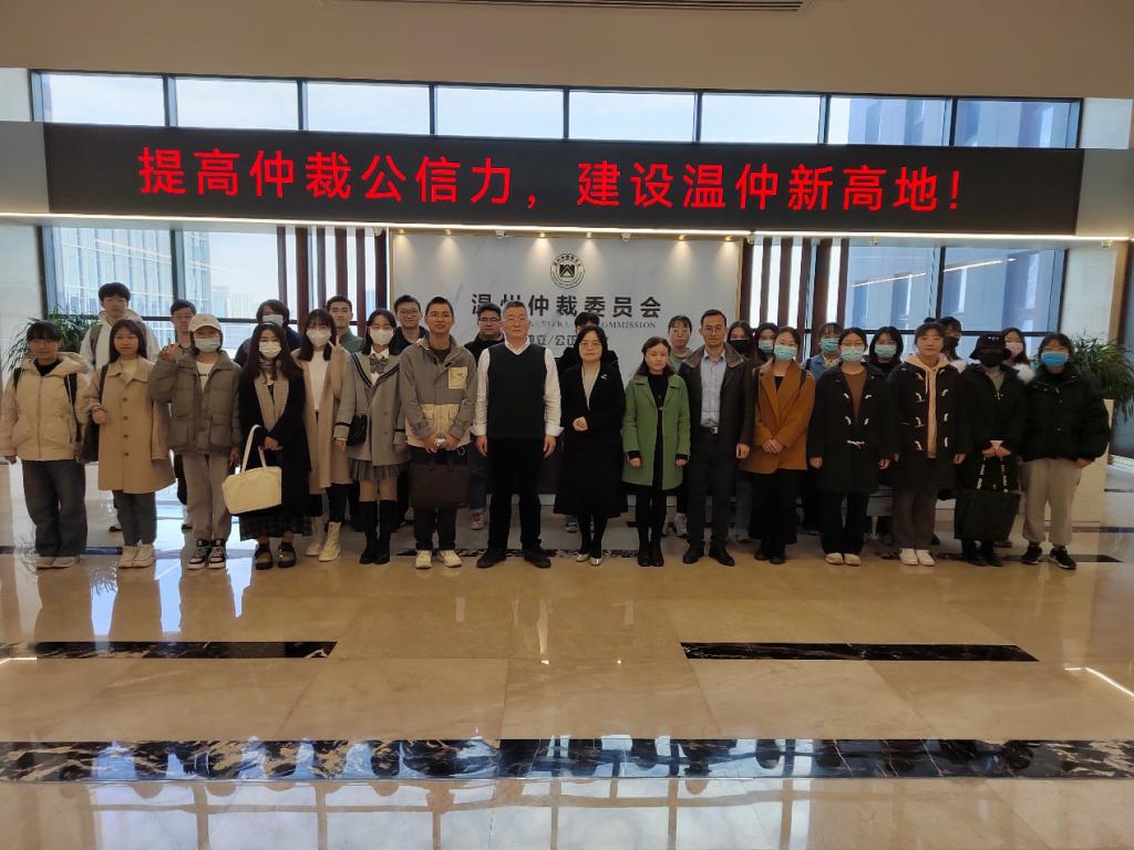 2021年11月25日,看片狂人 2018级法学专业本科生赴温州仲裁委员会开展实践教学活动,课程组指导老师李勇军、何平、柯宇航、邱杓丹带队前往。
