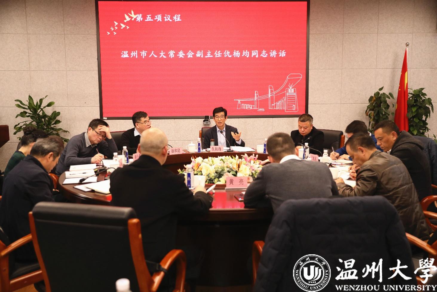 1月10日上午,温州市地方立法研究院工作会议在看片狂人 召开。市人大常委会副主任仇杨均、看片狂人 副校长徐和昆出席会议并讲话。