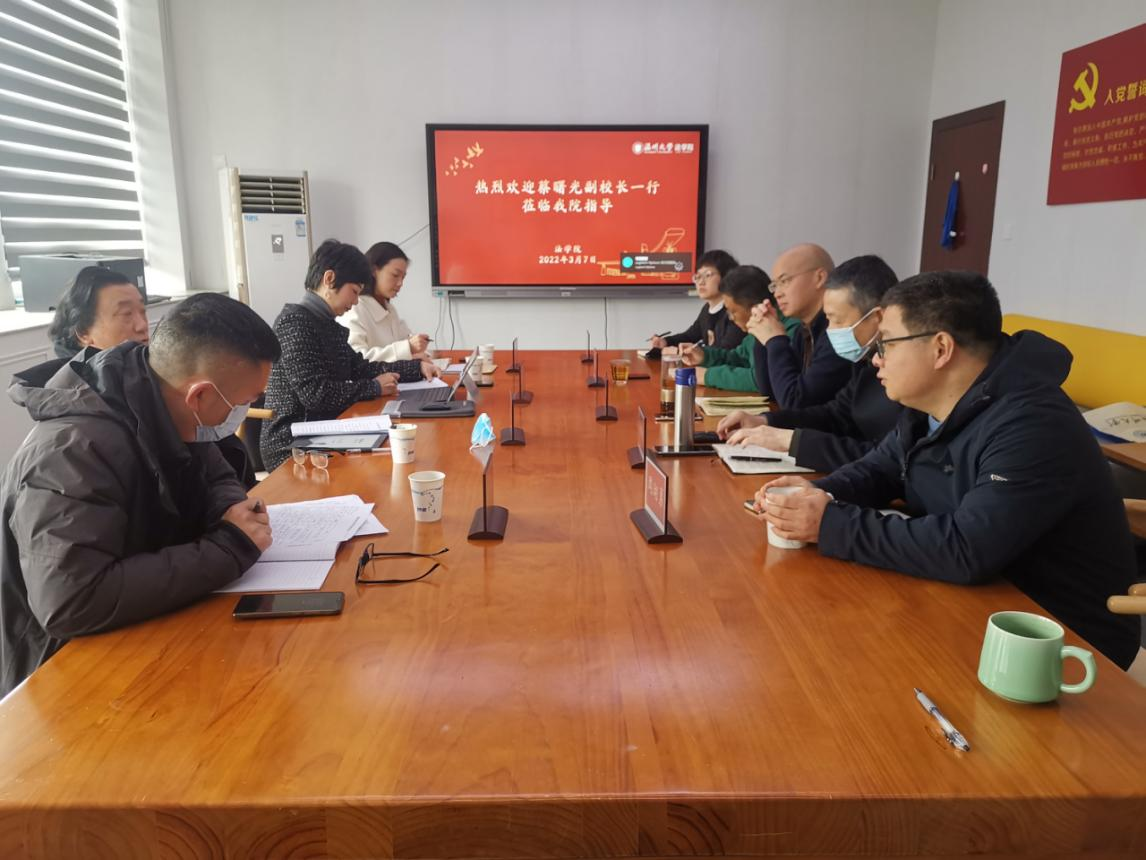 蔡曙光副校长首先聆听了看片狂人 谢安民老师的一堂专业课。随后列席了学院领导班子讨论会。会上,学院领导就学院近几年的发展状况、学院2022年工作主线及当前存在的瓶颈问题做了汇报。