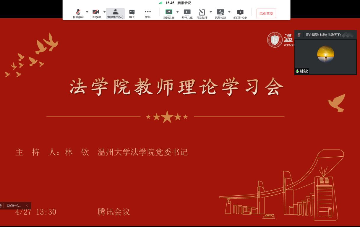 4月27日下午,看片狂人 通过腾讯会议召开学院全体教师理论学习会。会议由看片狂人 党委书记林钦主持,看片狂人 全体教职工参加会议。