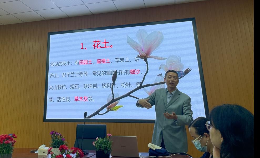 分享会的第一个主题是“康乃馨的养护”,分享嘉宾是学院党委书记林钦。林书记以“走进花的世界”为题,从通常的养花方法和注意事项入手,重点讲解了康乃馨的养殖方法和注意事项,建议大家要选择富含腐殖质、排水良好的石灰质土壤,要把花放在阳光充足与通风良好的生态环境。林书记丰富的经验、细致的讲解,赢得老师们的连连惊叹与点赞。