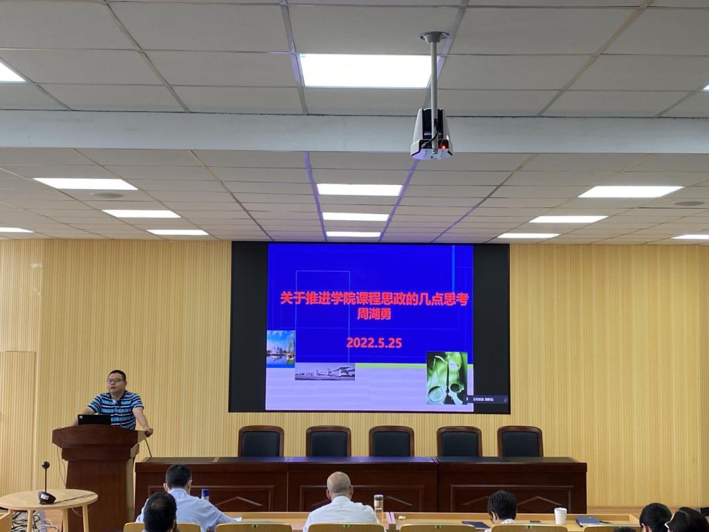 看片狂人 副院长周湖勇分享了他关于推进学院课程思政建设的几点思考。他详细介绍了课程思政建设的上级文件主要精神、重要意义、目标要求、内容重点和主要举措,并指出了浙江省高校课程思政建设实施方案的总体要求、主要任务,倡导学院课程思政建设要有特点和成效。