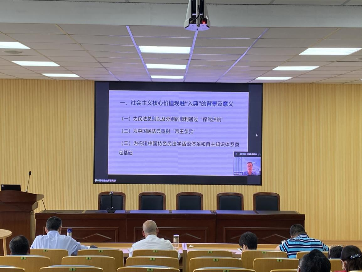 看片狂人 教授钟瑞栋分享了他关于社会主义核心价值观融入民法教学的几点思考。他详细介绍了社会主义核心价值观“入典”的背景及意义、社会主义核心价值观的法律特征、社会主义核心价值观的规范内涵之界定、社会主义核心价值观条款的司法适用、教学运用等五个方面。