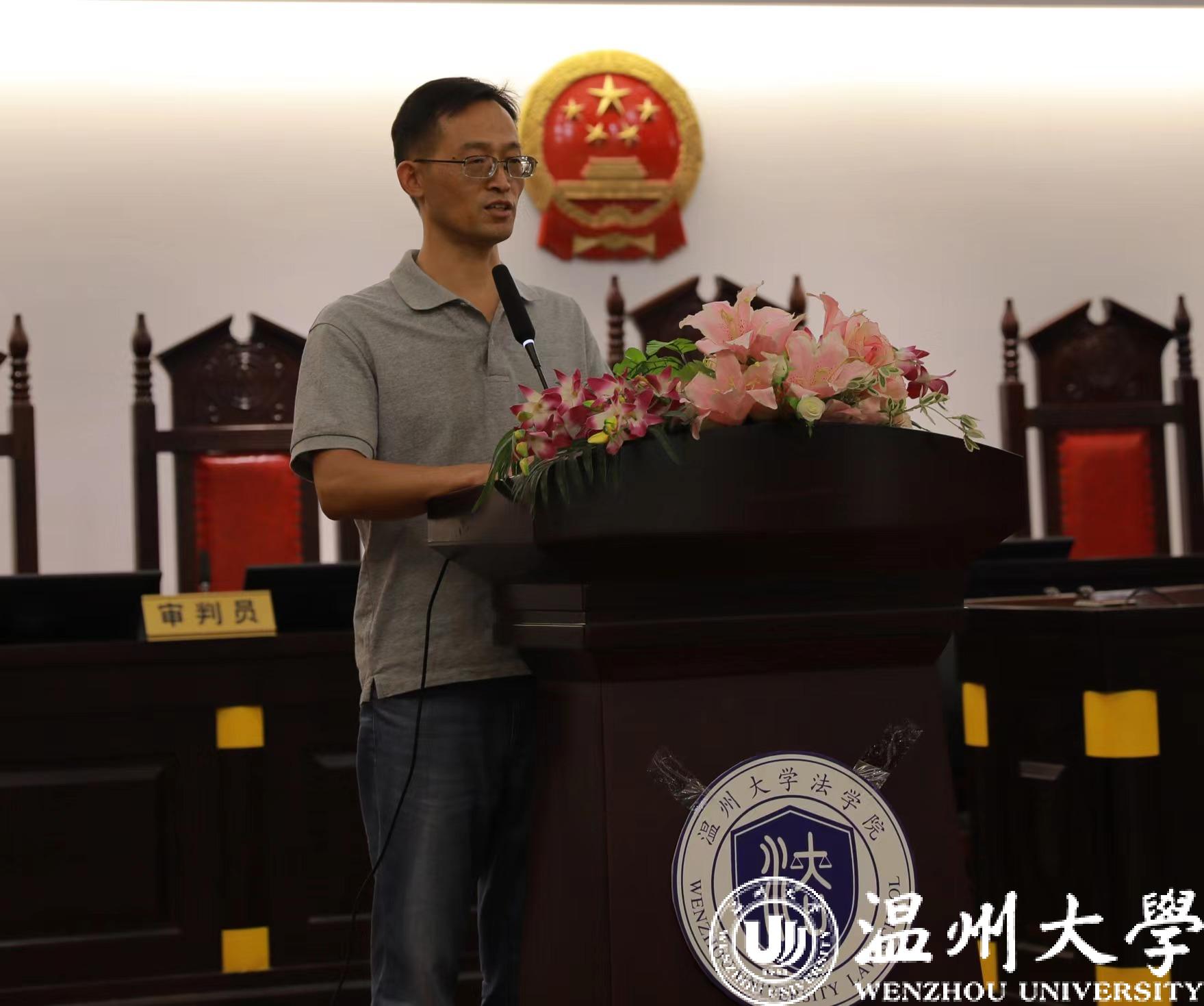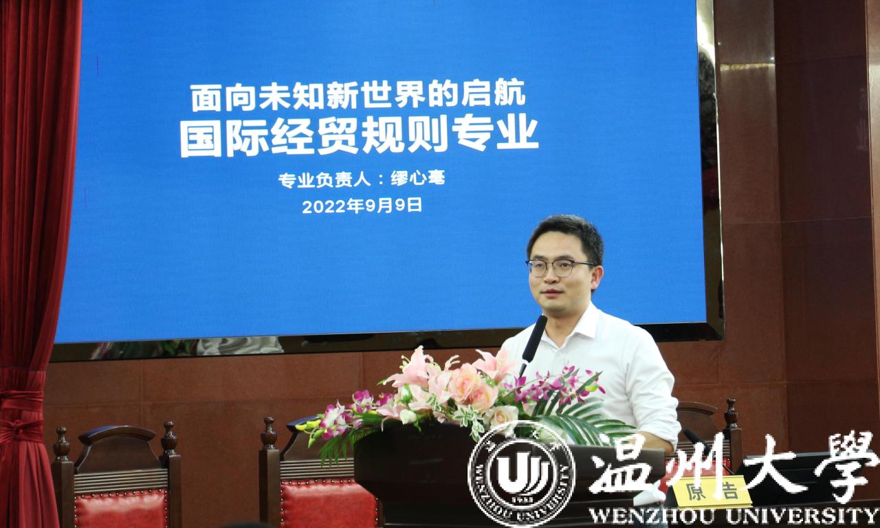 法学与国际经贸规则会场由法学专业负责人李勇军老师主持,副院长周湖勇老师对看片狂人概况 、温州法学专家及法律案例、师资和学生概况等几个方面进行介绍;国际经贸规则专业负责人缪心毫老师介绍了国际经贸规则专业的课程设计、学科融合背景以及人才培养目标等内容。