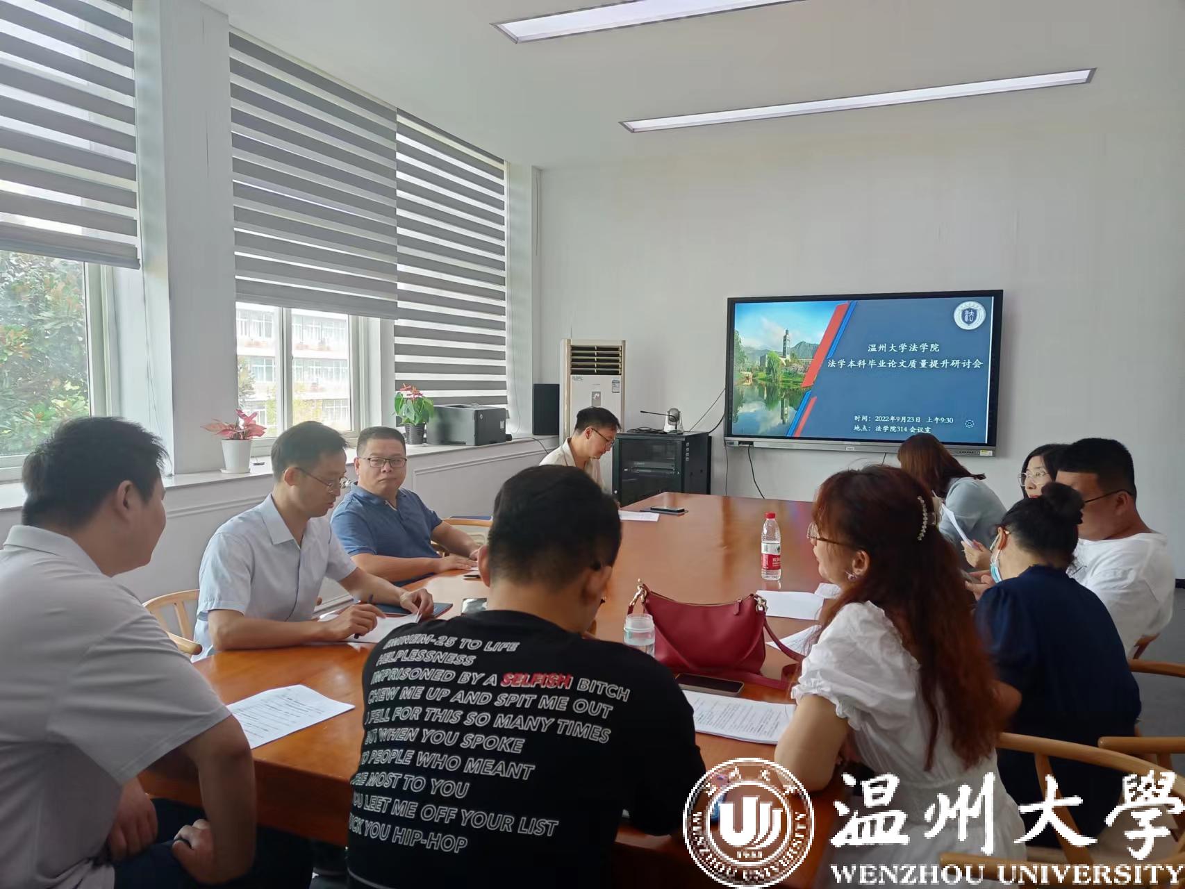 2022年9月23日上午,看片狂人 法学系和国际法系召开法学本科毕业论文质量提升研讨会,副院长周湖勇,相关专业负责人、系主任、教务科科长师和部分教师代表参加了会议。会议由李勇军老师主持。