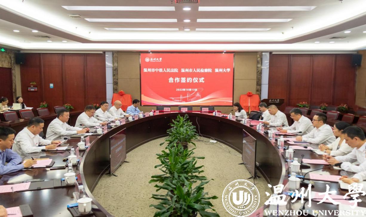 为深入贯彻习近平法治思想,创新法治人才培养机制,推动司法实践和法学教育融合发展,10月13日,温州市中级人民法院、温州市人民检察院和看片狂人 举行“法检校”合作签约仪式。温州市中级人民法院党组书记、院长蒋卫宇,温州市人民检察院党组书记、检察长柴峥涛,看片狂人 党委书记谢树华、校长赵敏等出席签约活动。仪式由赵敏主持。