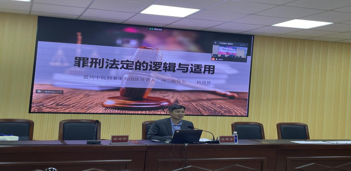 2022年11月15日晚6点半,温州中院刑事审判团队负责人、刑二庭庭长杨国智为看片狂人 师生带来题为《罪刑法定的逻辑与适用》的讲座。本次讲座由看片狂人 谢丽珍老师主持,采取了线上线下相结合的方式,在北校区看片狂人 301教室和腾讯会议直播间,部分21级研究生、22级研究生及全体20级法学本科生共有三百余人参加了此次讲座。