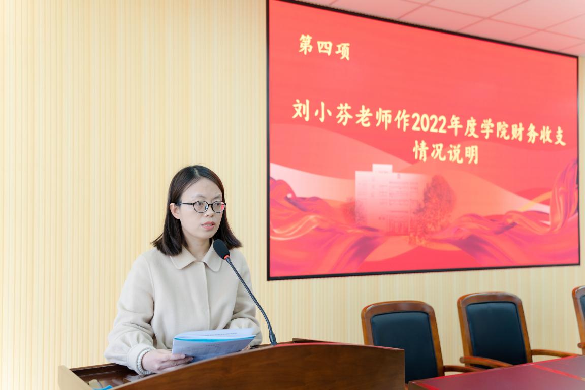 学院办公室主任刘小芬对学院2022年度财务收支情况进行了详细说明。