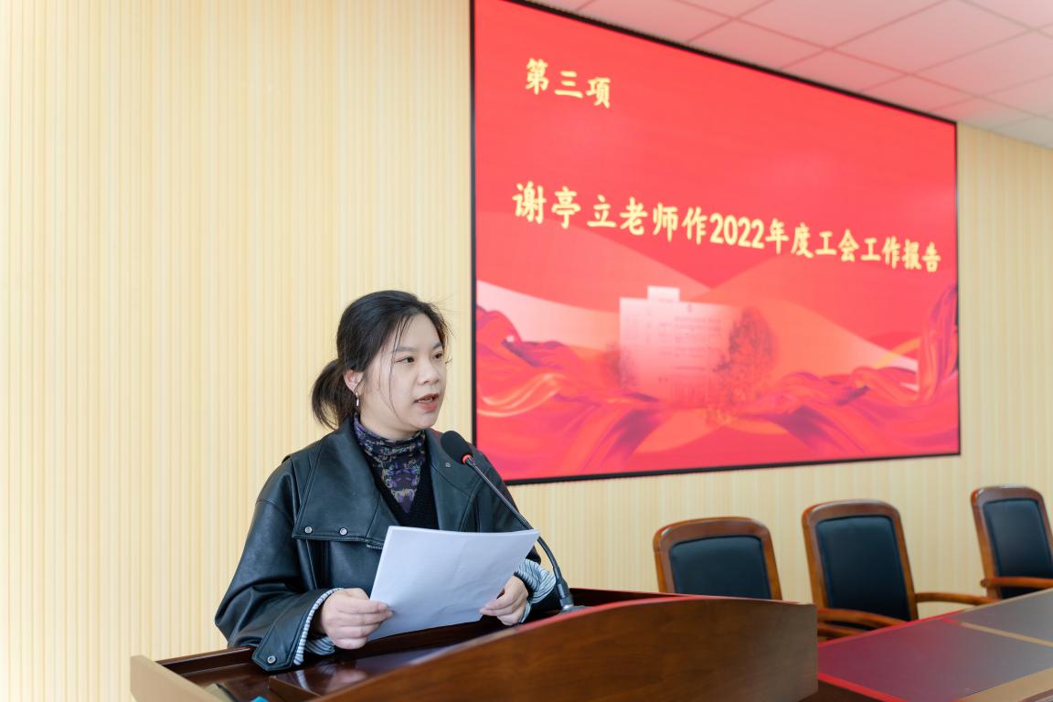 学院分工会委员谢亭立作《看片狂人 2022年度工会工作报告》,报告回顾了学院第五届工会委员会在过去的一年里全面履行的工会职责,较好地完成了工会的各项工作任务。同时对学院领导和全体老师对工会工作的配合和支持予以衷心的感谢。