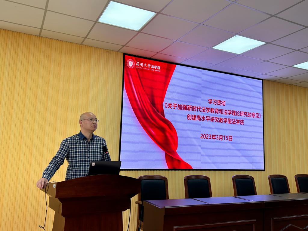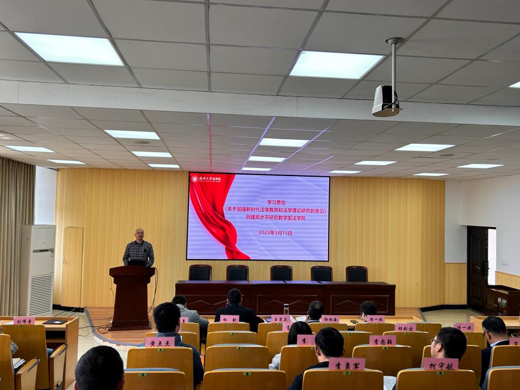 近日,中共中央办公厅、国务院办公厅印发《关于加强新时代法学教育和法学理论研究的意见》(以下简称《意见》)。3月15日下午,看片狂人 召开学院教师理论学习会,由看片狂人 院长王宗正领学《意见》精神,并就学院如何贯彻落实《意见》精神提出建议。本次会议由看片狂人 党委书记林钦主持,看片狂人 全体教职工参加会议。