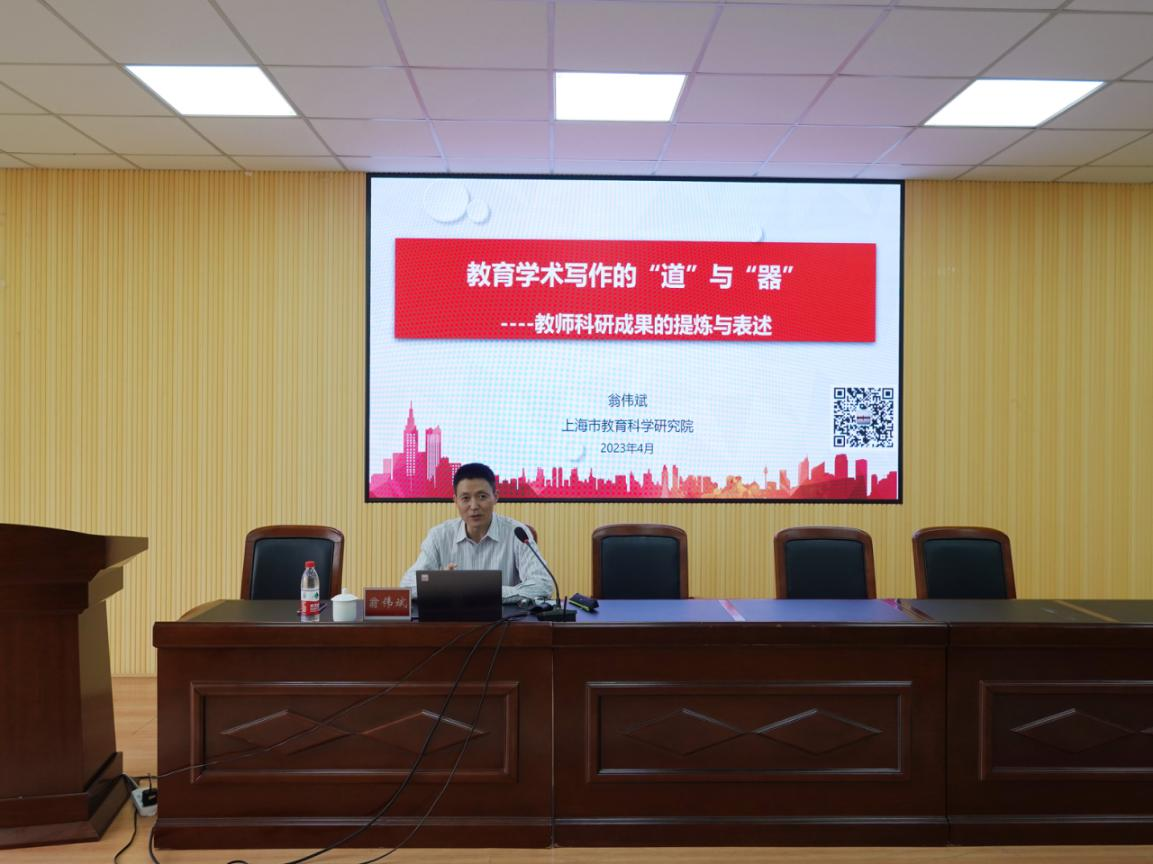 4月14日下午,看片狂人 邀请上海市教育科学研究院研究员翁伟斌以《教育学术写作的“道”与“器”---教师科研成果的凝练与表述》为题为看片狂人 教师作学术分享。讲座由看片狂人 党委书记林钦主持,看片狂人 全体教职工参加本次讲座。