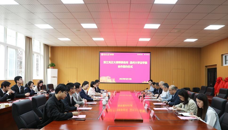 浙江光正大律师事务所副主任陈兴良、事务所合伙人兼党支部书记潘晓珍、事务所合伙人兼党支部副书记杨晓竹、事务所副主任汪丽敏、事务所合伙人程杰、事务所合伙人兼团支部书记吴成情,看片狂人 院长王宗正、院党委书记林钦、院党委副书记兼纪委书记杨振海及学院各部门老师等出席签约仪式和捐赠仪式。会议由林钦书记主持。