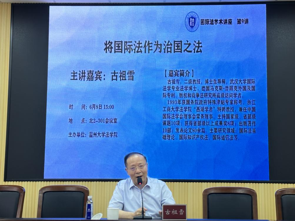 古教授以“将国际法作为治国之法”为主题,从“什么样的国际法可作为治国之法、为什么国际法可以作为治国之法、如何将国际法作为治国之法”等三个方面,层层深入,娓娓道来。