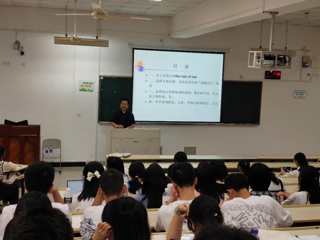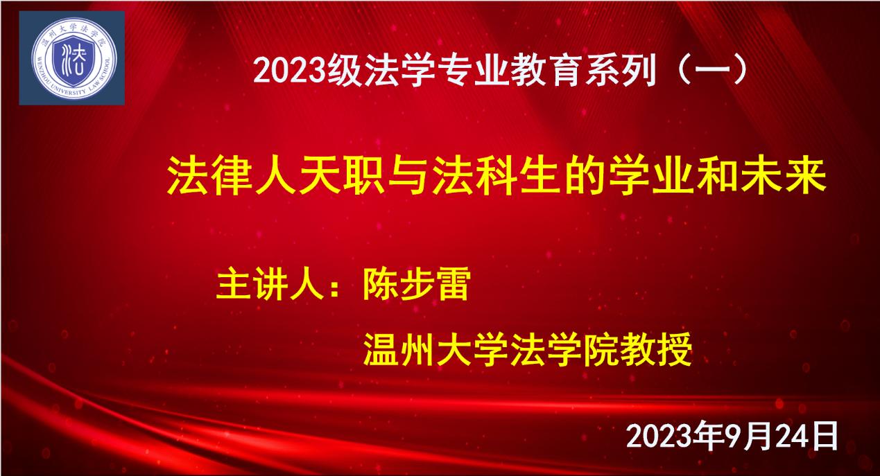 9月24日,2023级法学专业教育系列讲座正式启动,首场讲座由看片狂人 陈步雷教授开讲,主题为《法律人天职与法科生的学业和未来》。讲座由法学专业负责人、民商经济法系主任李勇军副教授主持,2023级法学专业全体本科生参加。