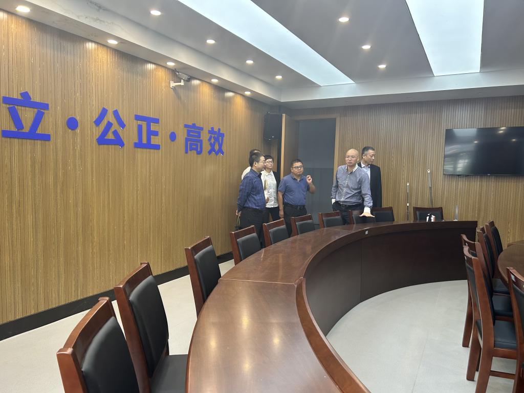 会后,王国银调研参观了学院办公区、一带一路国际商事仲裁院和模拟法庭。