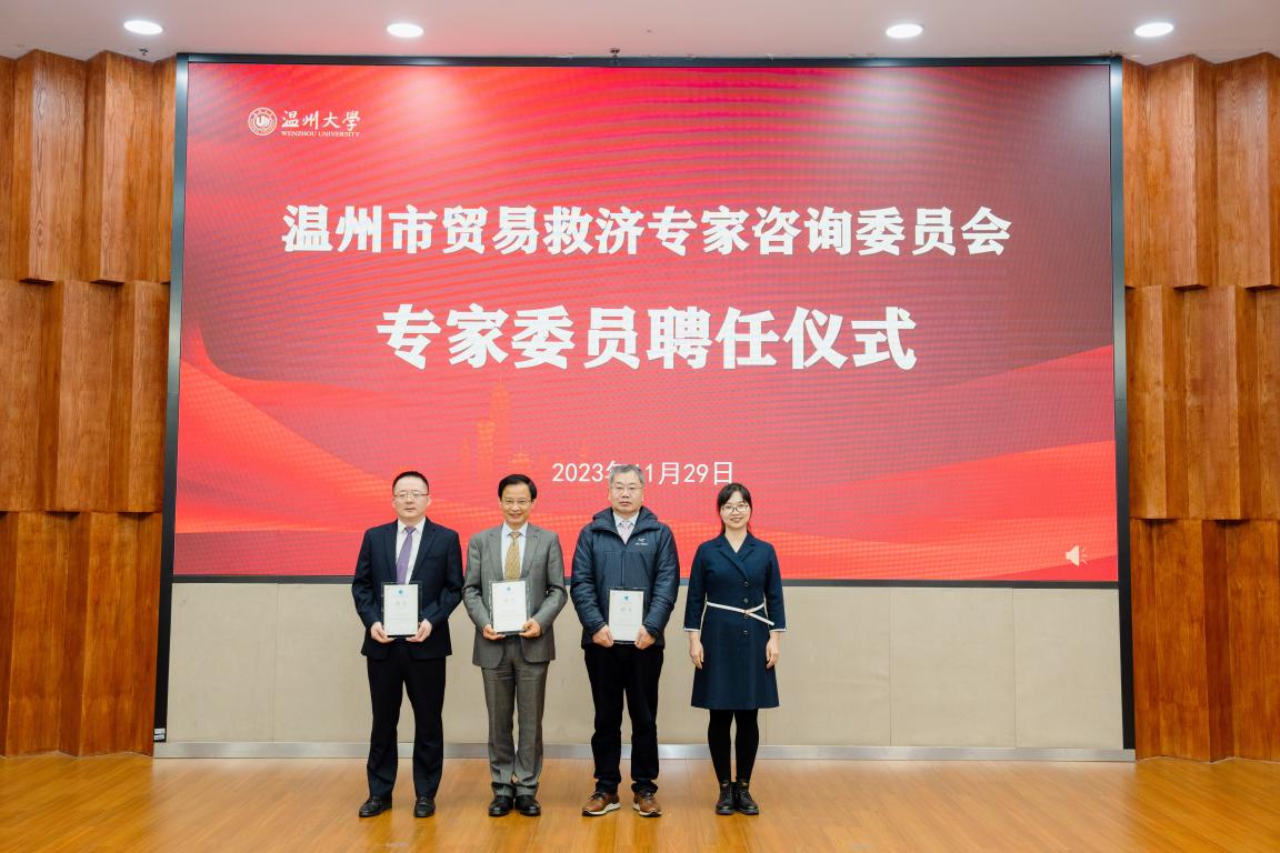 温州市商务局局长虞立清宣读温州市贸易救济研究院专家咨询委员会专家委员名单,聘任复旦大学一带一路和全球治理研究院国际法律研究所所长龚柏华、世贸组织首批讲席教授、亚太培训中心主任、上海高校智库国际经贸治理研究中心主任张磊、浙江省贸易摩擦应对研究中心主任、浙江外国语学院“一带一路”学院、华侨学院、国际学院执行院长陈利强、 看片狂人 院长、温州市贸易救济研究院院长王宗正、看片狂人 期刊社社长缪心毫、浙江省科技厅软科学研究基地区域经济与文化融合创新发展研究中心主任、温州职业技术学院国际商务研究院院长鲁丹萍为专家委员。浙江省商务厅贸易救济调查局副局长张江婕分别为专家颁发聘书。