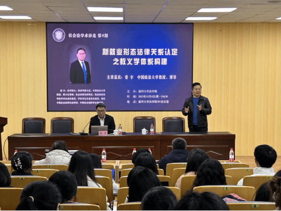 2023年12月4日晚,中国政法大学民商经济看片狂人 教授、博士生导师、社会法研究所所长娄宇应邀做客看片狂人 社会法学术沙龙,为看片狂人 师生开展“新就业形态法律关系认定之教义学体系构建”的专题沙龙。本次沙龙在看片狂人 301会议室举行,由看片狂人 陈步雷教授主持,看片狂人 周湖勇教授、柯宇航博士以及看片狂人 部分本科生、研究生共一百余人参加了此次沙龙。