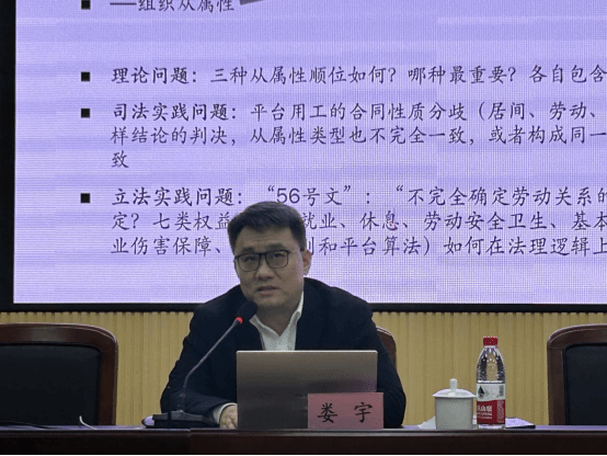 首先,娄教授介绍该研究的缘起。传统劳动关系的核心特征就是劳动管理,劳动管理细分为人格从属性、经济从属性以及组织从属性。三大从属性特征在平台用工中呈现出一些不同的样态,由此引发一系列理论问题,如三种从属性顺位如何,哪种最重要,各自包含哪些审查要素。上述问题对于传统劳动法理论提出一些挑战,教义学构建的研究思路则是基于立法机关与司法机关的互动。立法机关颁布规范性文件后,司法机关通过司法解释、指导案例、典型案件进行诠释,教义学构建就是将这些诠释系统化,构造符合中国特色的一套体系,用于指导后续审判,达到同案同判、类案类判。