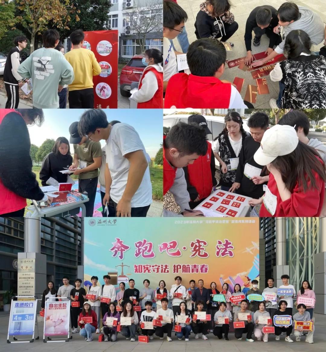 浙江经济职业技术学院商贸流通学院则组织师生志愿者前往杭州钱塘区知行社区,开展“弘扬宪法精神”打卡、法条拼贴诗比赛和宪法知识答题等亲子趣味普法活动。