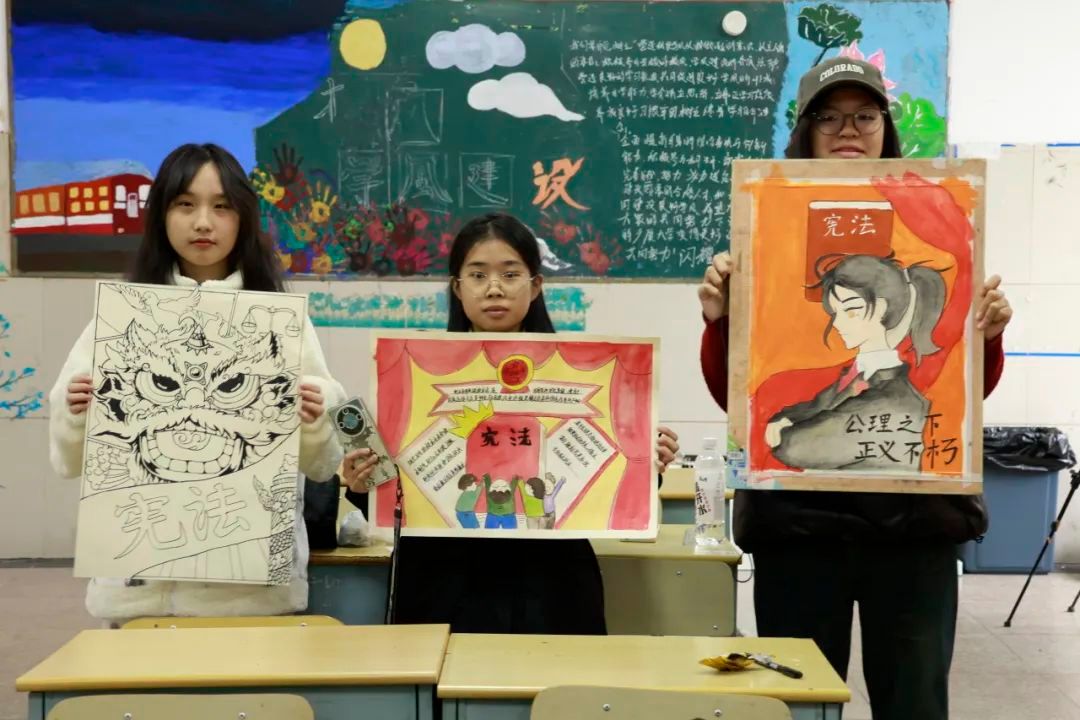 浙江广厦建设职业技术大学开展“法在我心中“彩绘活动,艺术生利用专业特长绘制出他们所理解的宪法知识。