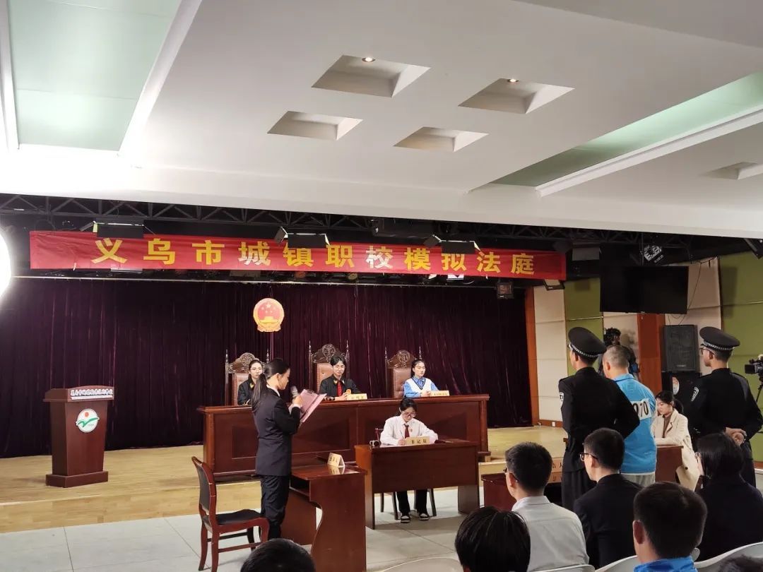 义乌市城镇职业技术学校的模拟法庭庭审围绕一起贴近日常校园生活的聚众斗殴案件展开,让“遇事有法、遇事找法”的法治观念深入师生内心。