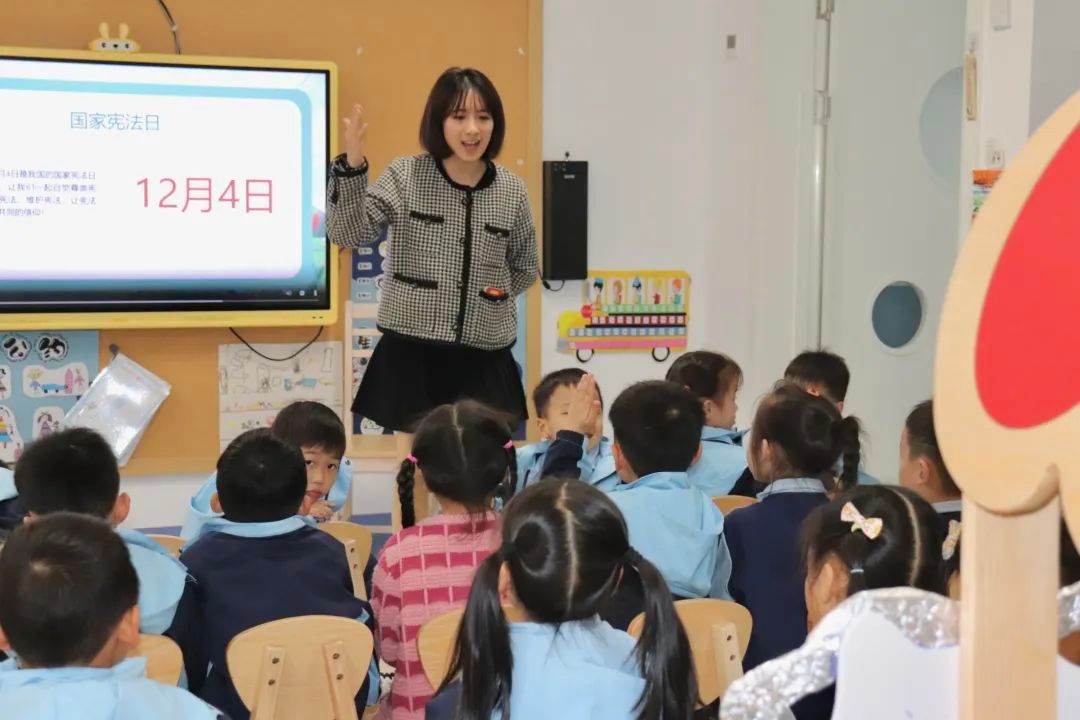 “小朋友们,你们知道12月4日是什么日子吗?你们知道宪法和我们的生活有什么关系吗?”长水派出所警官、嘉兴市南湖实验幼儿园法治副校长通过一系列趣味问题帮助孩子们掌握生活中的宪法知识。