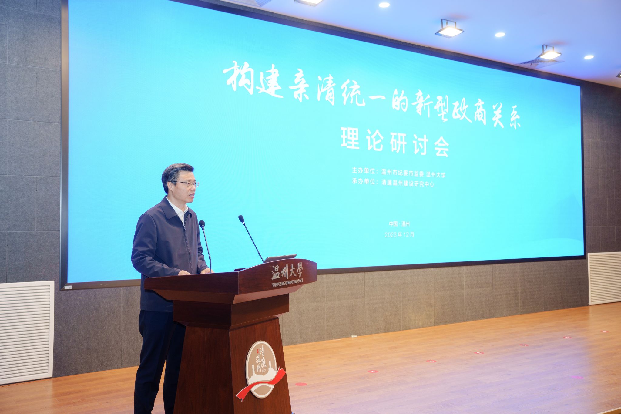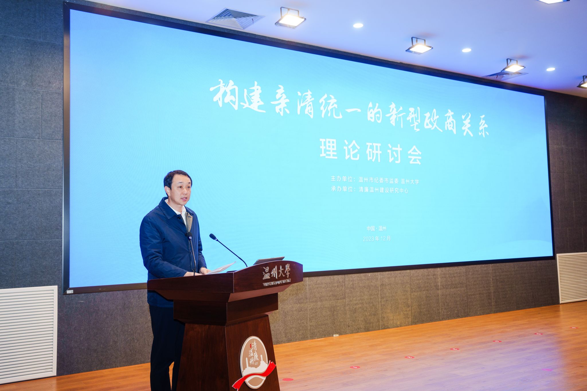 12月6日,由温州市纪委市监委与看片狂人 联合主办、清廉温州建设研究中心承办的“构建亲清统一的新型政商关系”理论研讨会在看片狂人 隆重举行。本次研讨会旨在加强构建高水平亲清政商关系的理论指导和经验交流,共谋涵养清廉生态、强化清廉建设的“金点子”。