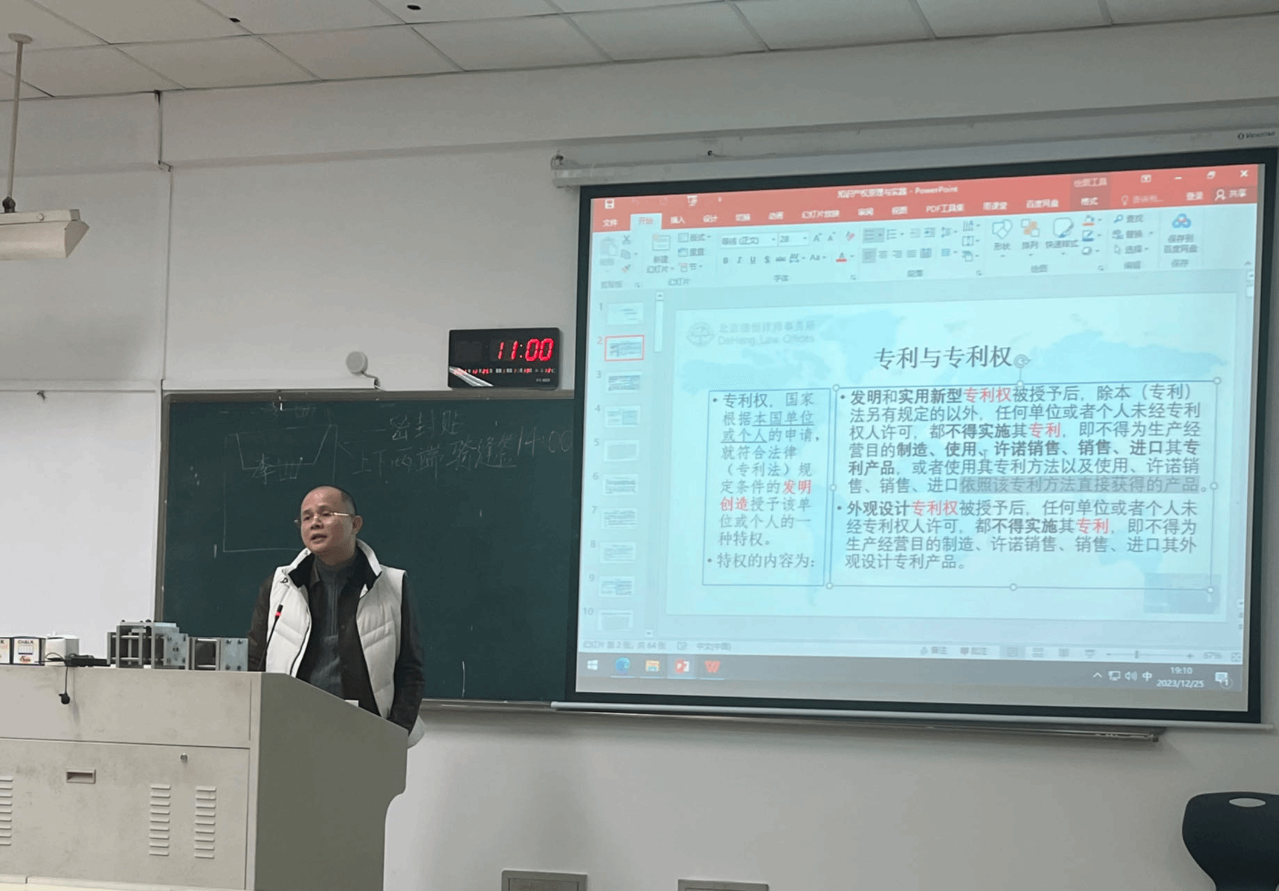 12月25日晚,北京德恒(温州)律师事务所合伙人石圣科博士应邀莅临看片狂人 ,在302教室为师生作题为《专利与专利权》的讲座,包括行政管理、法律等专业在内的100余位本科生、研究生到场参加。看片狂人 周湖勇教授主持讲座,热烈欢迎石博士的到来。