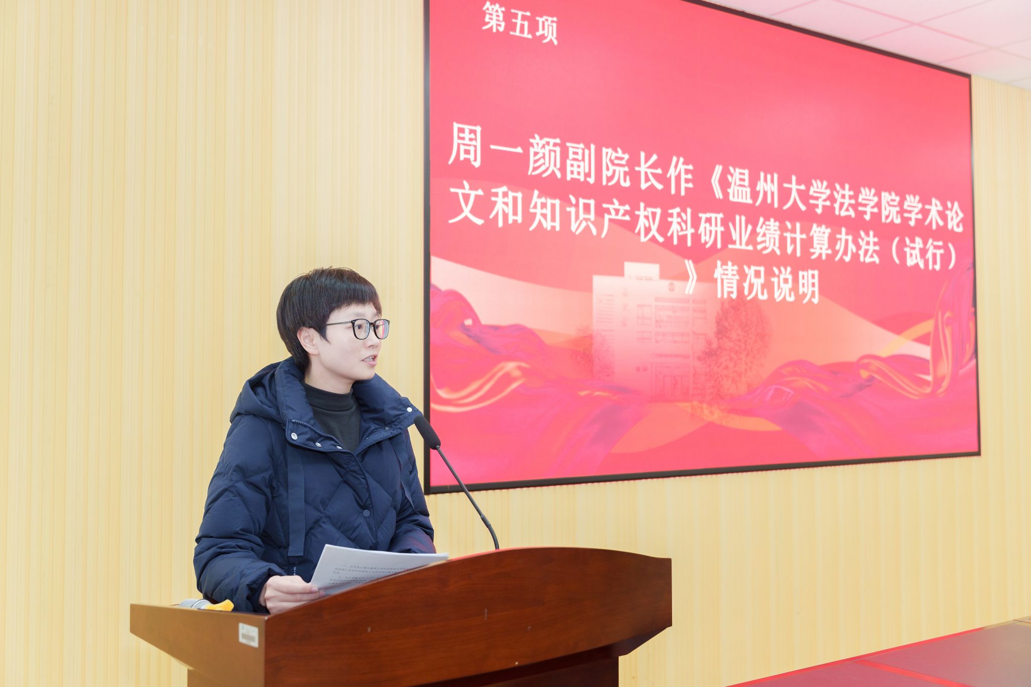 看片狂人 副院长周一颜作《看片狂人 学术论文和知识产权科研业绩计算办法(试行)》情况说明。她从出台背景和施行目的等方面对文件进行详细解读,鼓励学院教师激发创新创造活力,优化学术生态,创造出高质量、高贡献的科研业绩。