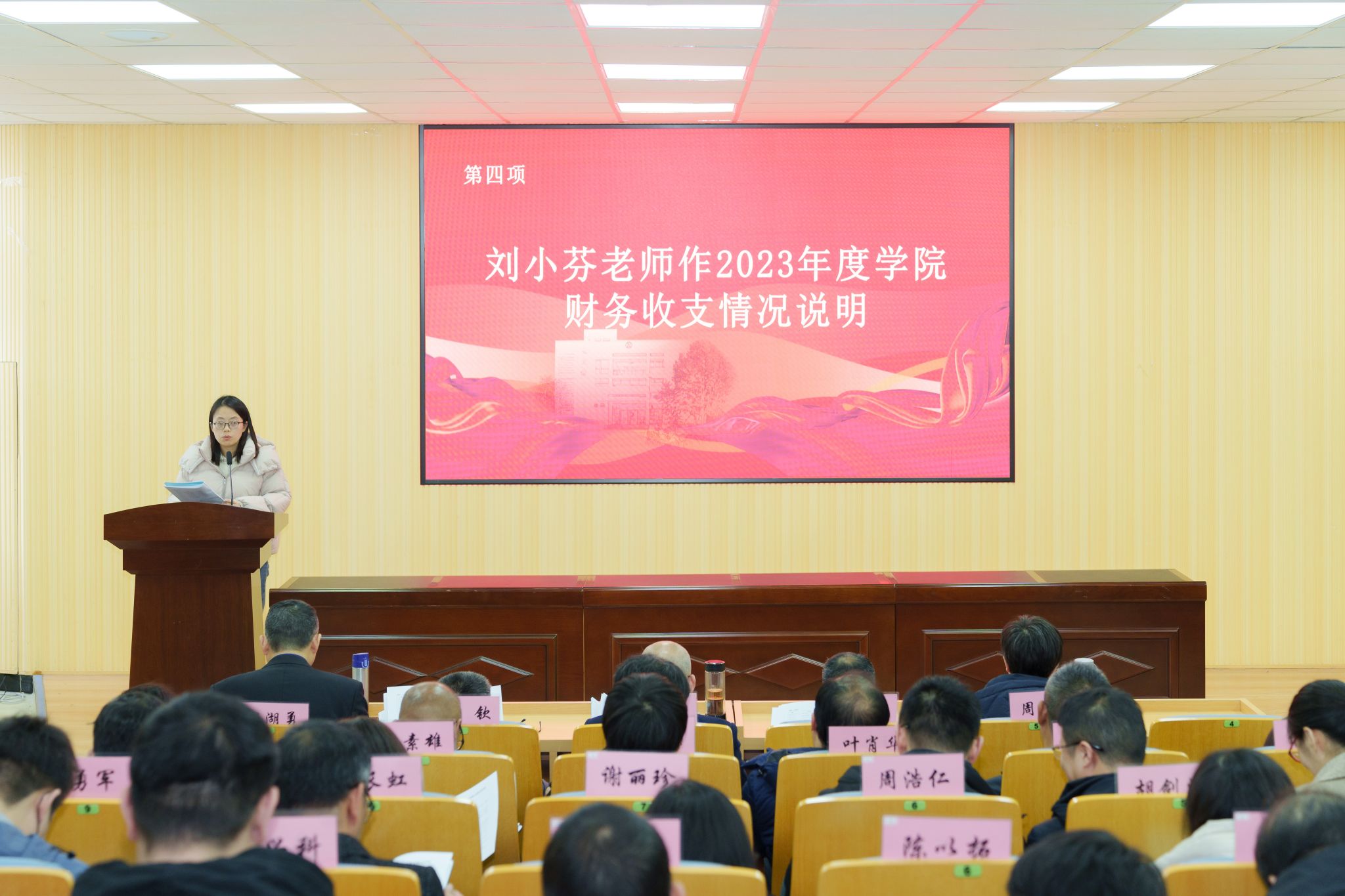看片狂人 办公室主任刘小芬老师作学院2023年度财务收支情况说明。她提醒全体教职员工齐心协力,开源节流,提前规划,合理使用有限的资金,提高资金的使用效益,以确保学院各项事业持续、健康、协调地发展。