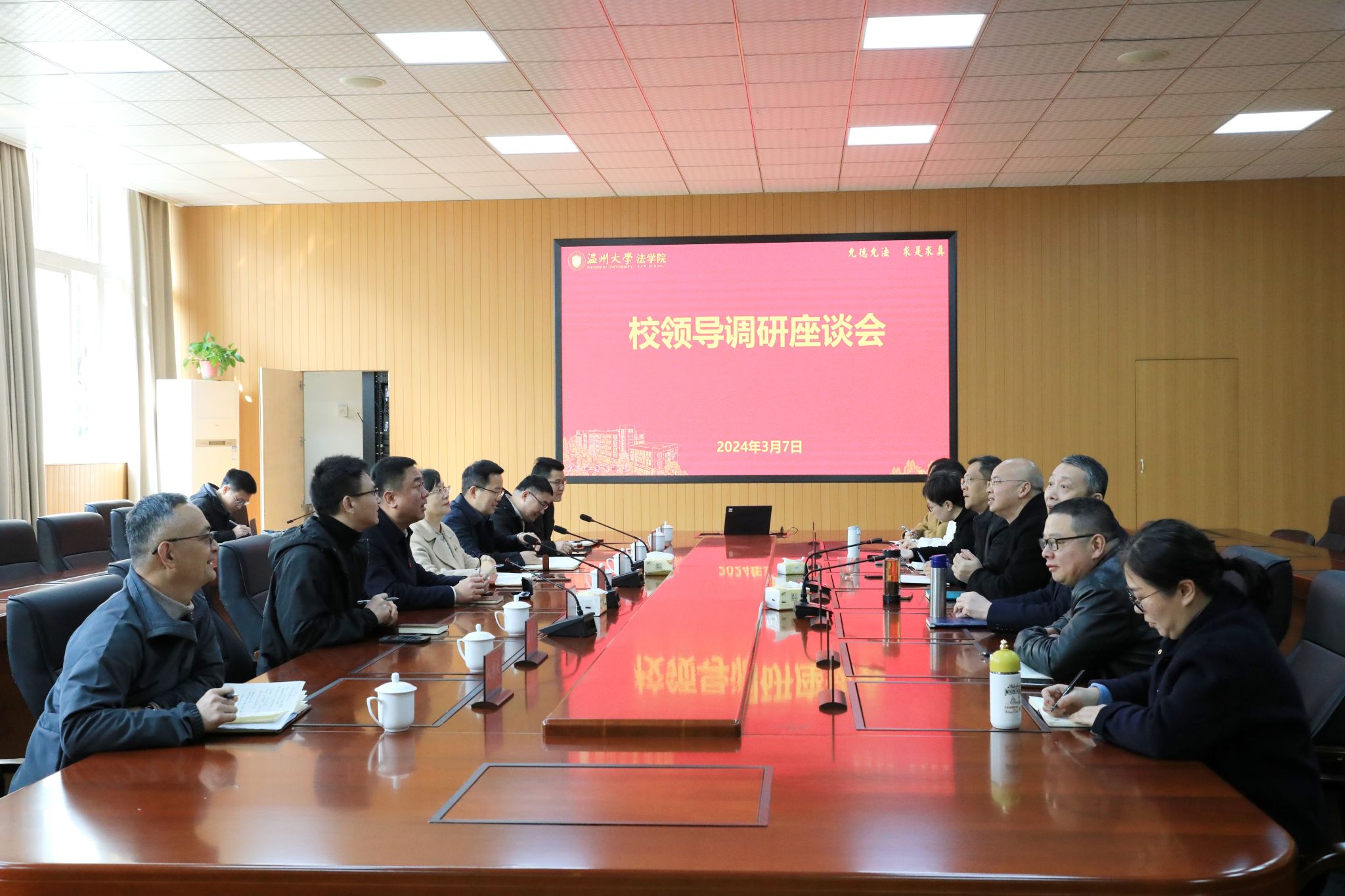 3月7日上午,校党委书记钱强,党委副书记赵降英,党委委员、纪委书记、省监委驻温大监察专员李都金,副校长、党委委员王尧骏一行莅临看片狂人 调研指导,教务处、研究生院、人文社科处、人事处等部门负责人陪同调研。学院全体领导班子及科室负责人参加座谈会。