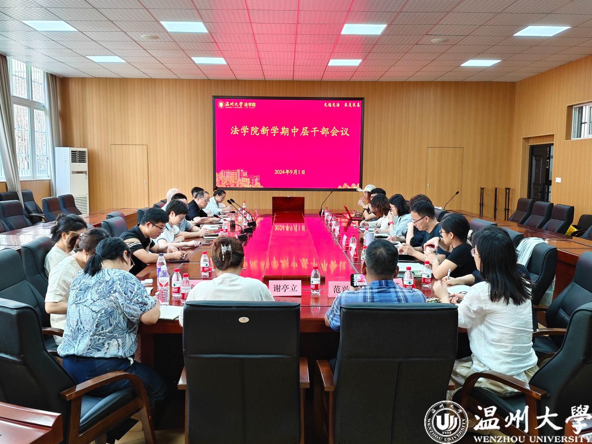 王宗正院长作了总结讲话。他表示,此次会议不仅是新学期工作布置的重要节点,也是学院领导班子换届和中层干部调整后的首次会议,更是学院发展战略研讨的一次重要会议。王宗正强调,未来工作将重点围绕博士点申报展开,形成广泛合力与共识,整合各方资源,全力推进法学学科建设。王宗正指出,要强化人才培养,突出专业特色,解决升学与就业等关键问题;通过多种形式的培训活动增加学院收入,缓解当前经费紧张状况,合理整合师资与课程资源,开拓涉外法治培训项目,助力教育发展与教师待遇提升;进一步培养干部队伍,鼓励更多年轻干部脱颖而出。王宗正院长对全体中层干部提出了“政治强、业务强、管理强”的“三强”要求,勉励大家成为出色的执行者和参谋者,为学院的发展贡献智慧与力量。
