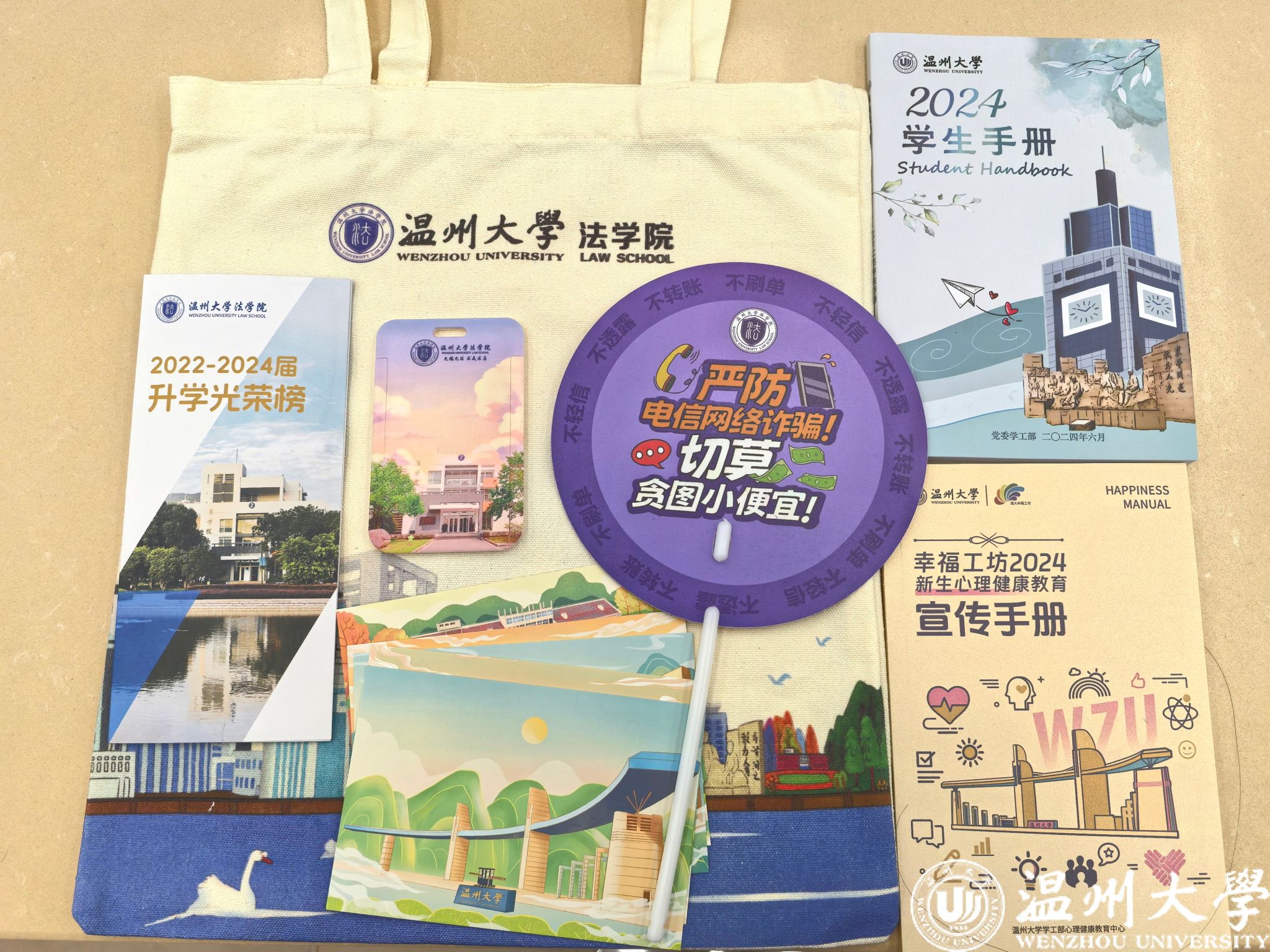 学院还设计制作了防诈清凉扇,印有实用的反诈知识和温馨提示,在炎炎夏日将“反诈清凉之风”送到新生和家长之中,为新生上好“防诈第一课”。