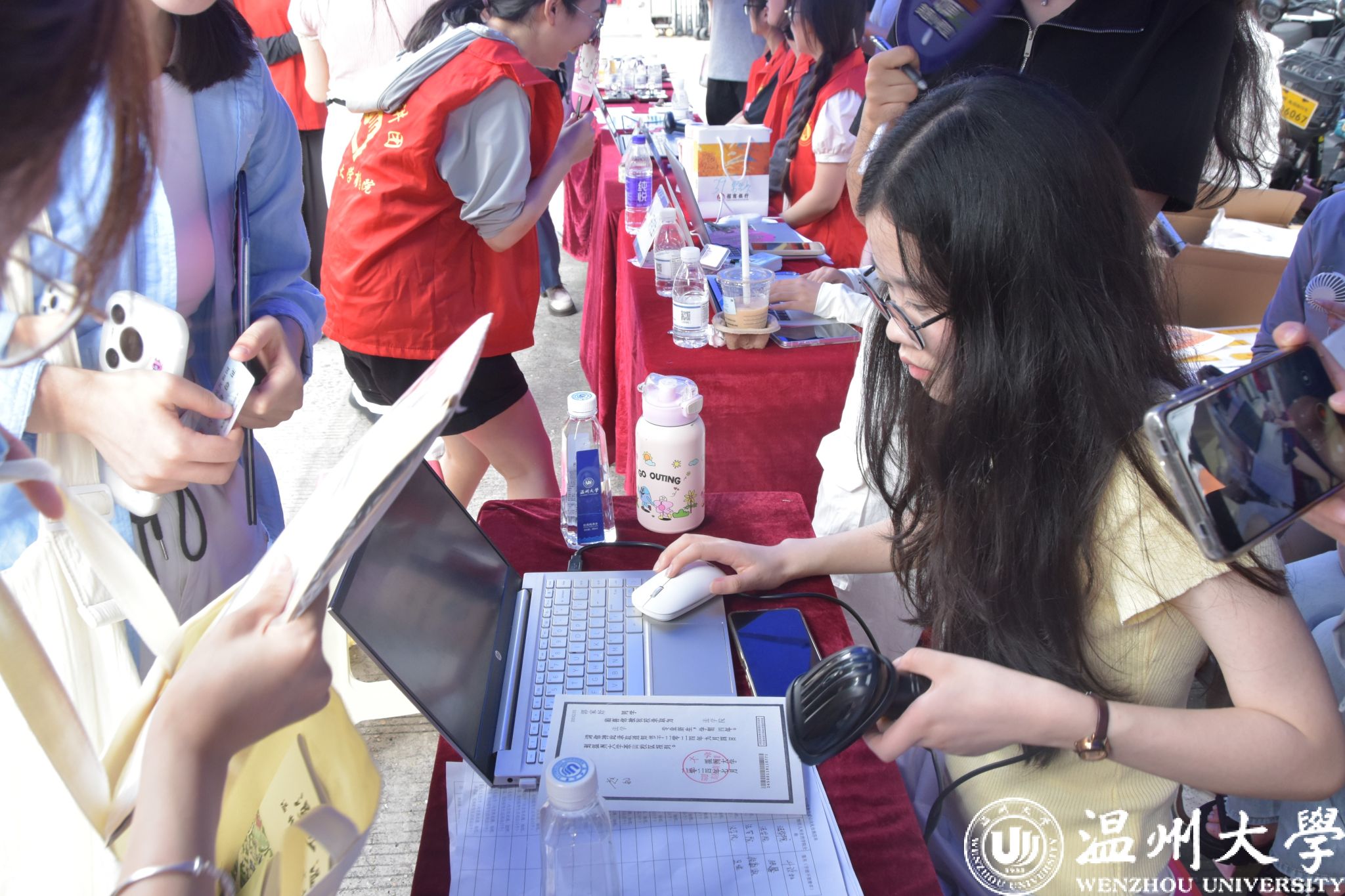 学院精心设计打卡点,通过定制拍立得“现场出片”,为新生拍摄了初到温大的第一张“青春靓照”,一次次的快门声记录下了新生们和看片狂人 的初见,一张张新鲜出炉的照片定格了新生和家人迈入人生崭新阶段的难忘瞬间。