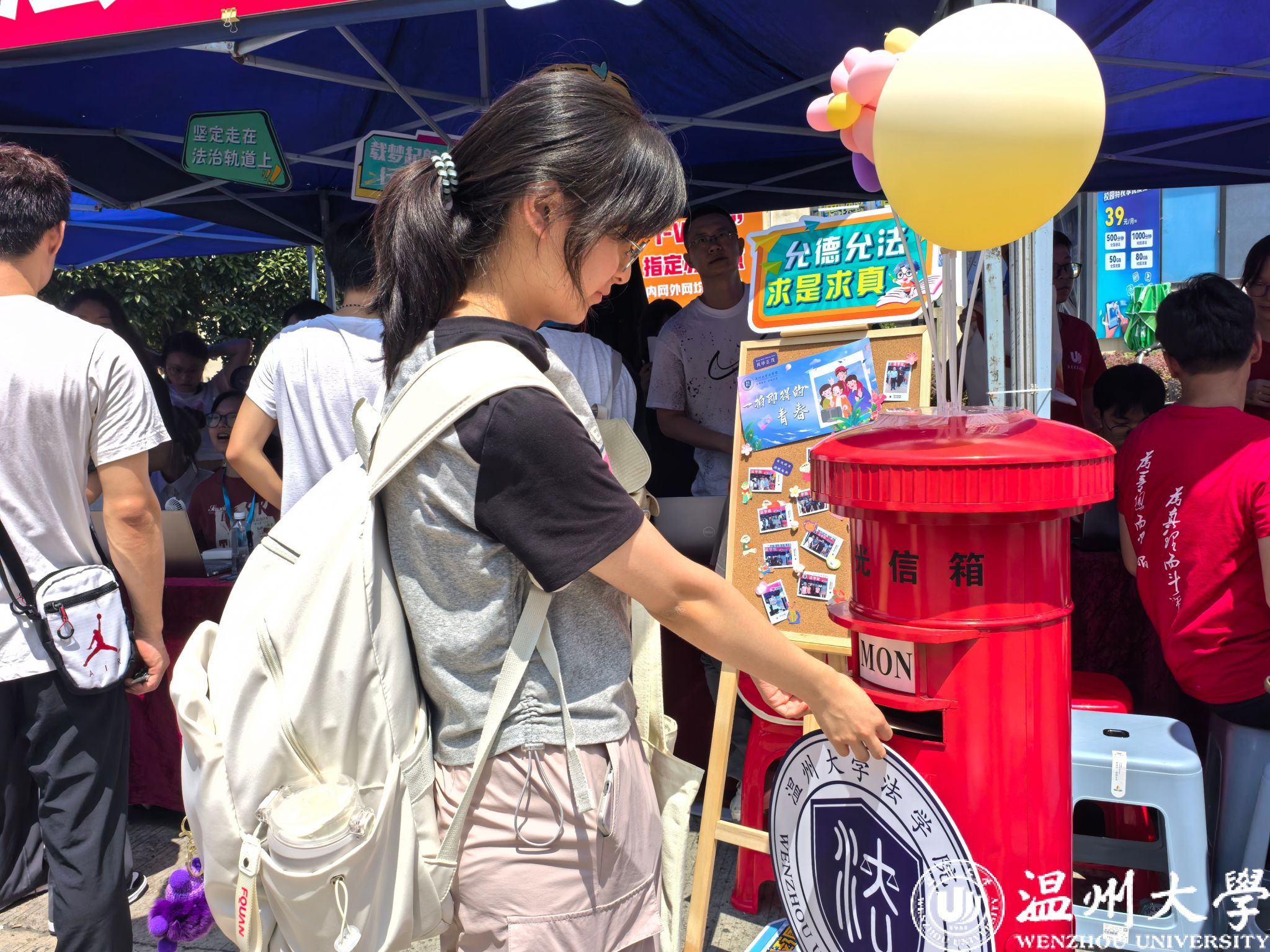 学院为新生准备定制波波球,鼓励新生在气球上写下对未来的期待和祝福,给新学期、新生活“打打气”。