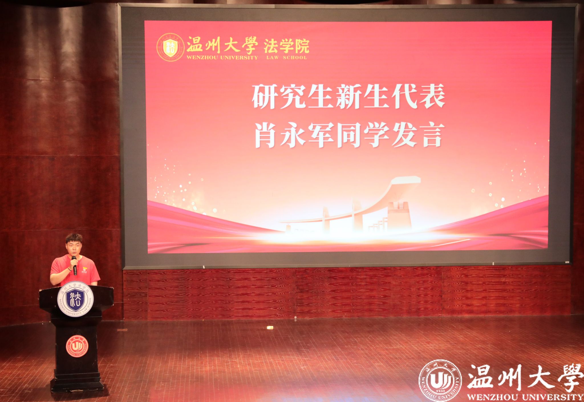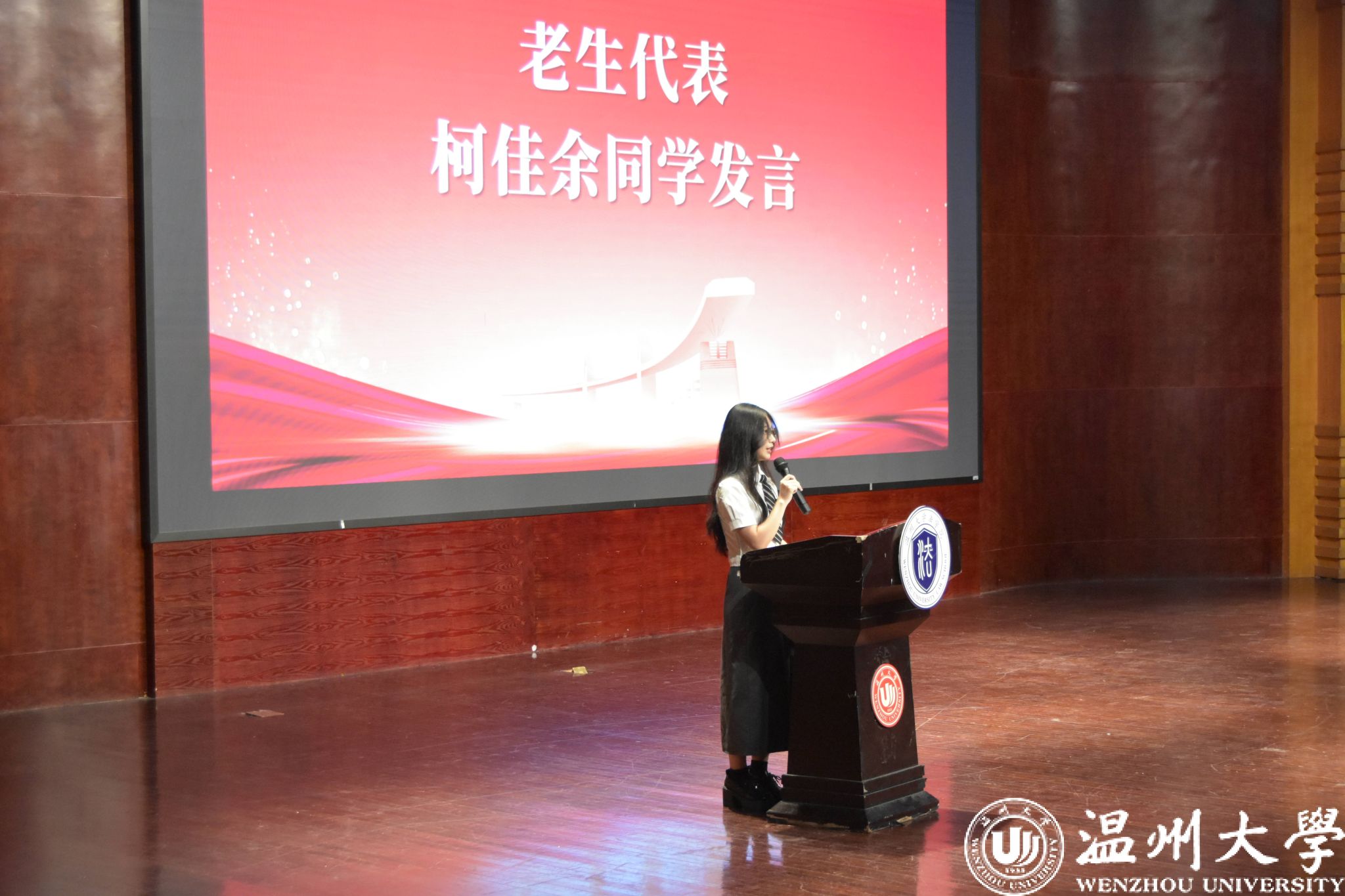 本科新生代表吴文熙分享了自己初到温大的感受,表达了对专业学习的热情、对大学生活的向往与憧憬以及立志成才的决心,也倡议同学们专注研习学科知识,注重自身全面发展,在迎接挑战的同时,收获细碎璀璨的成长和与未来切磋的勇气。