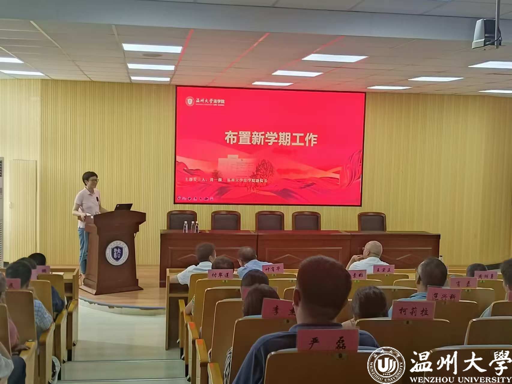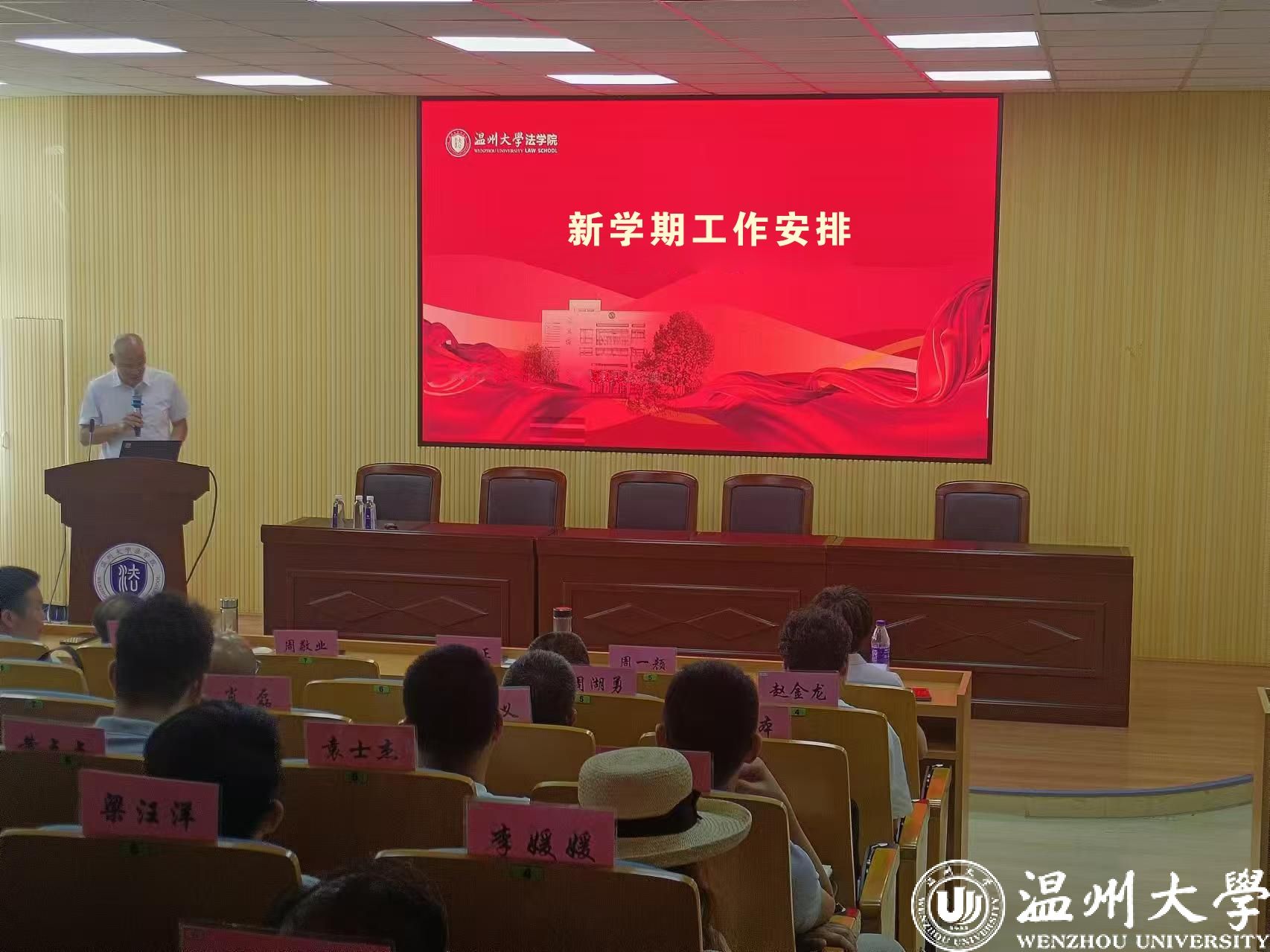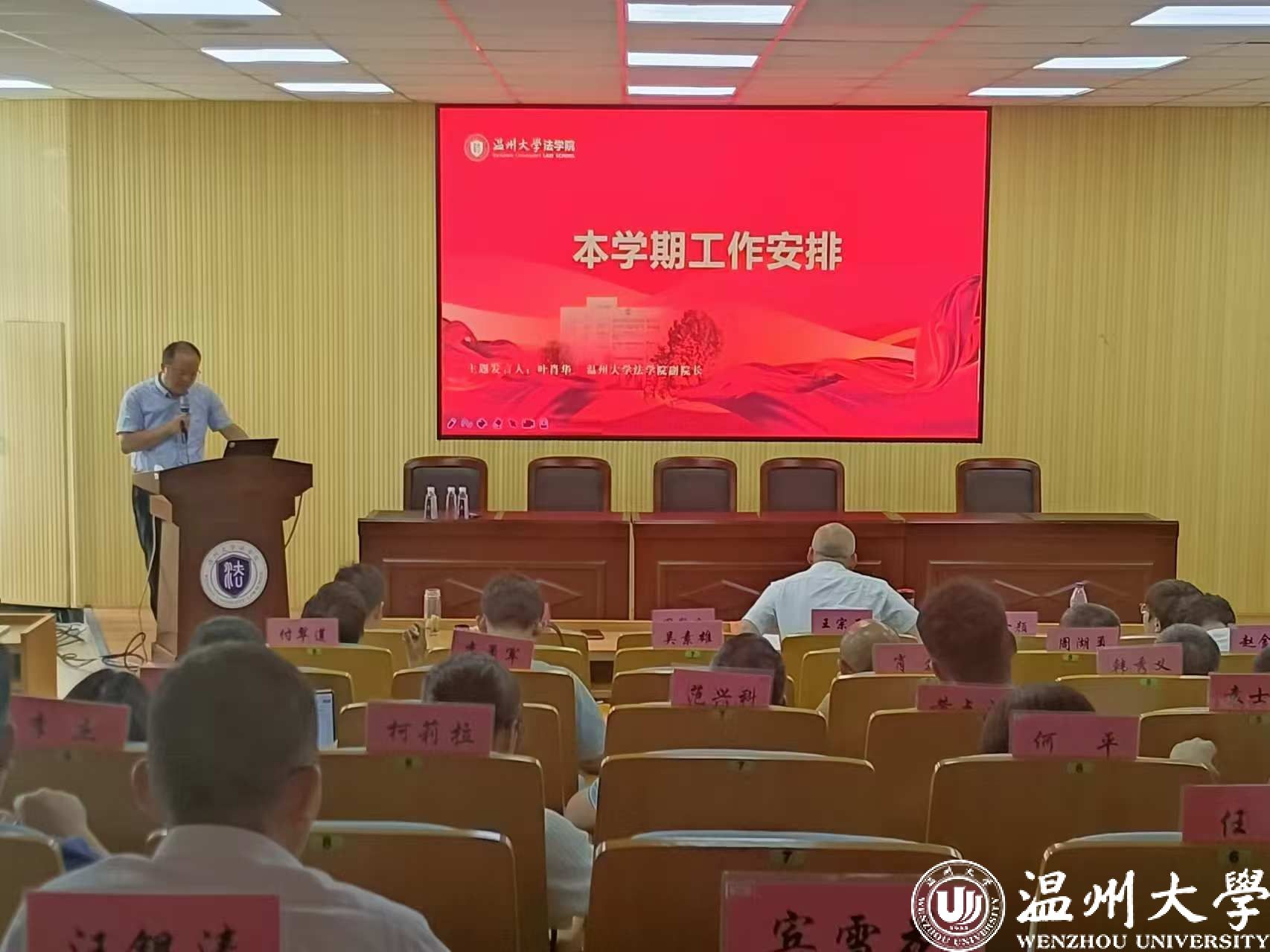 叶肖华副院长对新学期学科、科研、研究生工作进行安排。分别是做有组织的科研、学院律师事务所成立、加强地方合作与培训、研究生人才培养四个方面。他指出,统筹科研,开源创收,成立律所,增强地方合作,完善人才培养等,都是紧紧围绕学院发展主线开展。