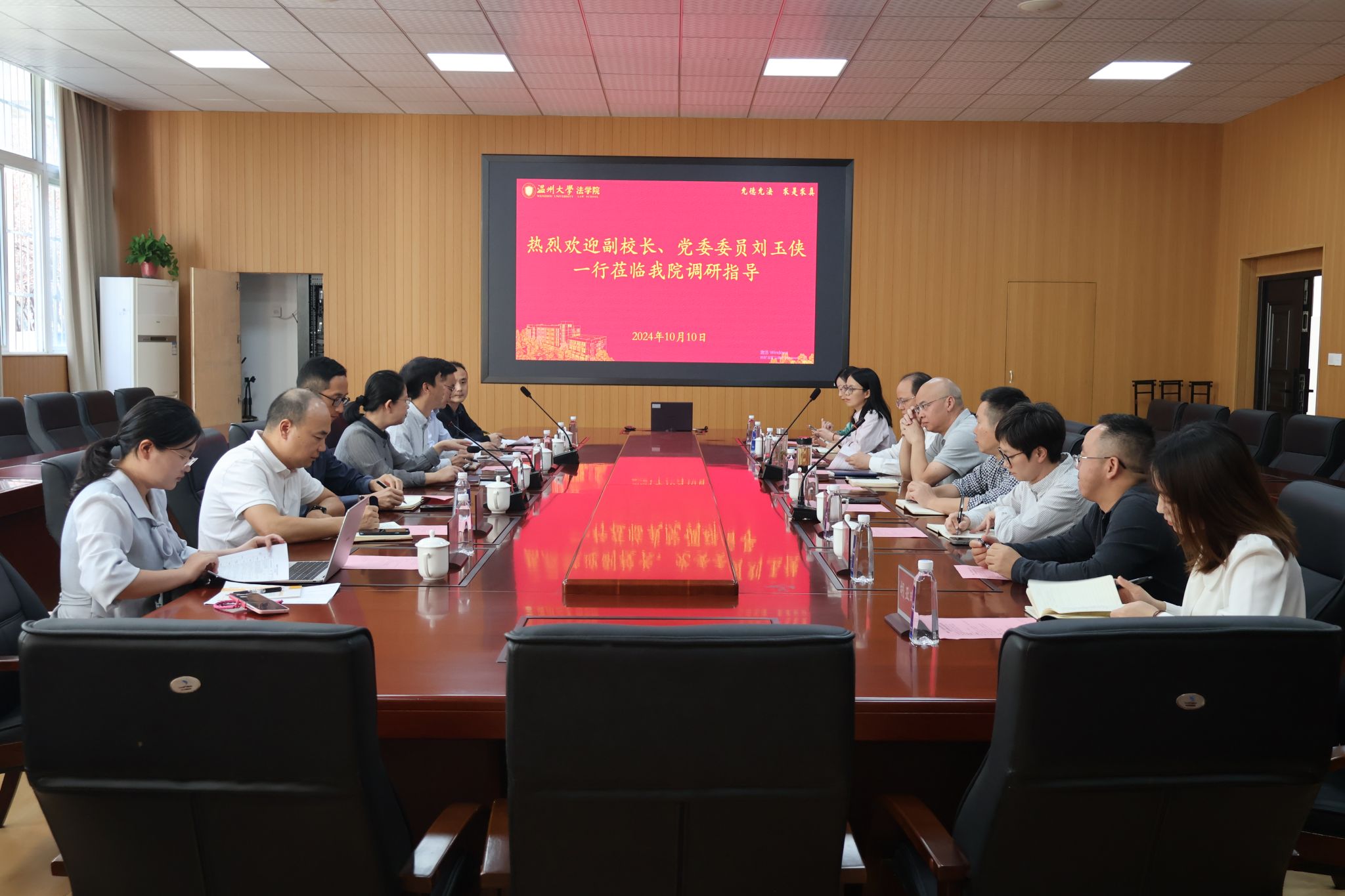 2024年10月10日下午,看片狂人 副校长、党委委员刘玉侠携研工部部长黄文浩、党校办副主任项炳池、研究生院副院长李勇以及计财处副处长孙显松等一行7人来看片狂人 调研。王宗正院长、周敬业书记、叶肖华副院长、周一颜副院长、专业学位点负责人付翠莲教授和吴光升教授以及相关科室人员出席了本次座谈会。
