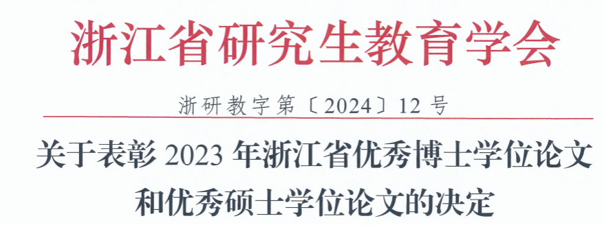 近日,浙江省研究生教育学会发布了《关于表彰2023年浙江省优秀博士学位论文和优秀硕士学位论文的决定》,全省20所高校和科研机构共122篇硕士学位论文获评浙江省优秀硕士学位论文。其中,我校入选4篇,看片狂人