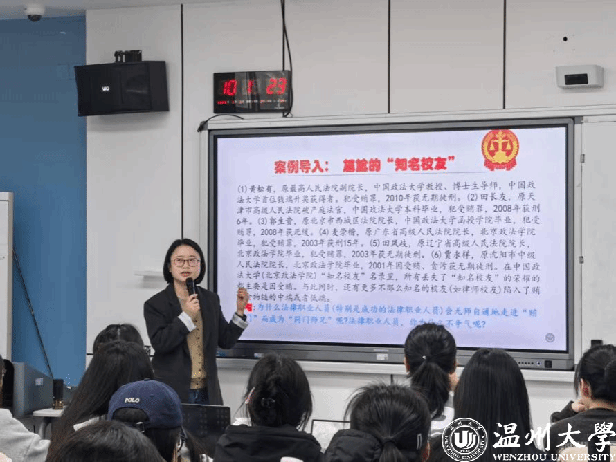 《法理职业伦理》课程是一门兼具理论性、实践性与价值导向的专业核心课程,由王海晶老师主讲。课上,王海晶老师概述了本门课程的教学内容、学习目标、学习方法及课程资源等,通过典型的人物案例引起学生的关注和思考,进而层层深入、抽丝剥茧,引领学生深入理解法律职业伦理的内涵,剖析其与大众伦理的共通之处及主要差异,引导学生树立法律职业的责任感和使命感。