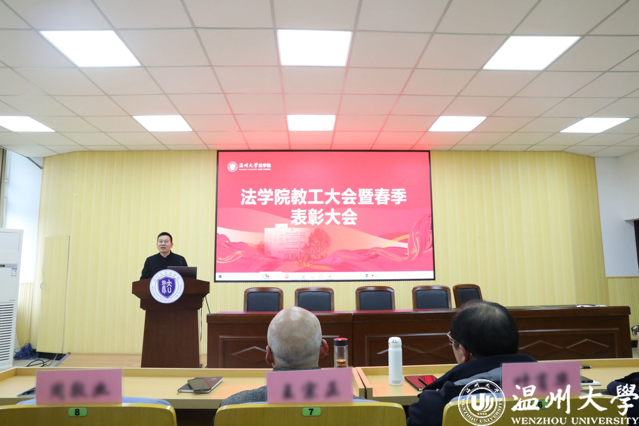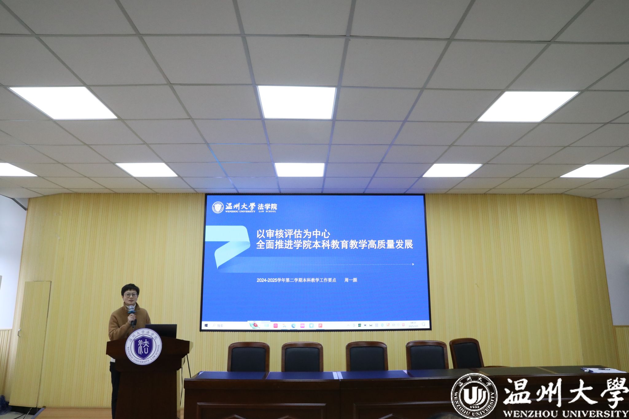 副院长周一颜从本科教育教学审核评估、教学常规、教学专项工作三方面部署新学期教学工作。她指出,要围绕审核评估中心工作,对标对点,补齐短板,提升本科教学质量;要对教学档案材料检查整改,根据教学制度文件修订增补,提升课堂教学质量;推进涉外法治人才协同培养,做好《国家安全教育》教学规范与课程改革等。