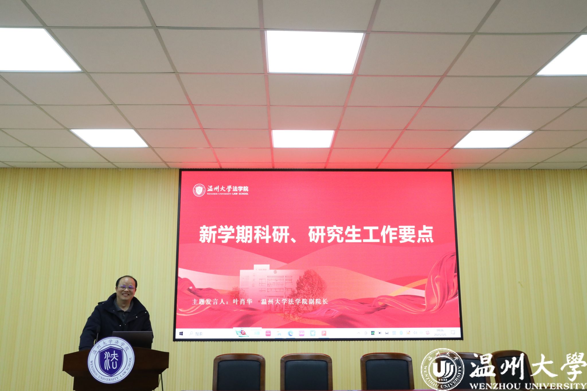 副院长叶肖华在回顾学院2024年度科研工作以及分析近五年国社科基金的基础上,部署新学期科研和研究生工作。他指出,要加强顶层设计与谋划,凝练研究方向与打造团队,力争取得一批标志性成果,实现省级科研平台突破,同时要做好社会服务和研究生人才培养等工作。