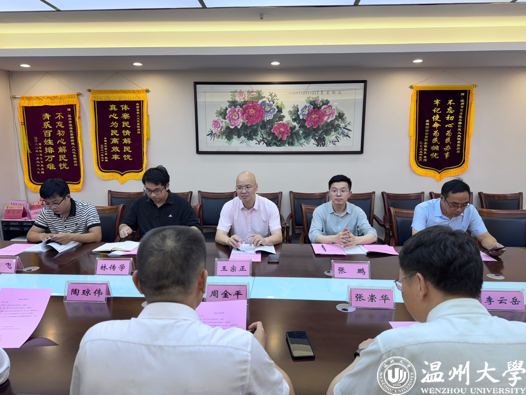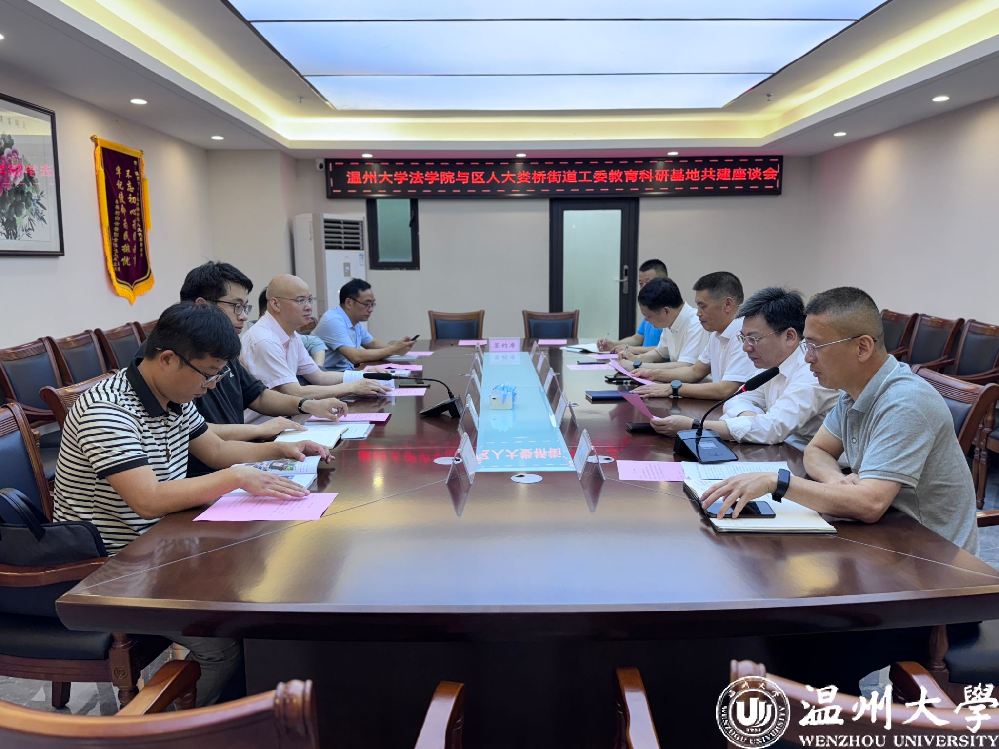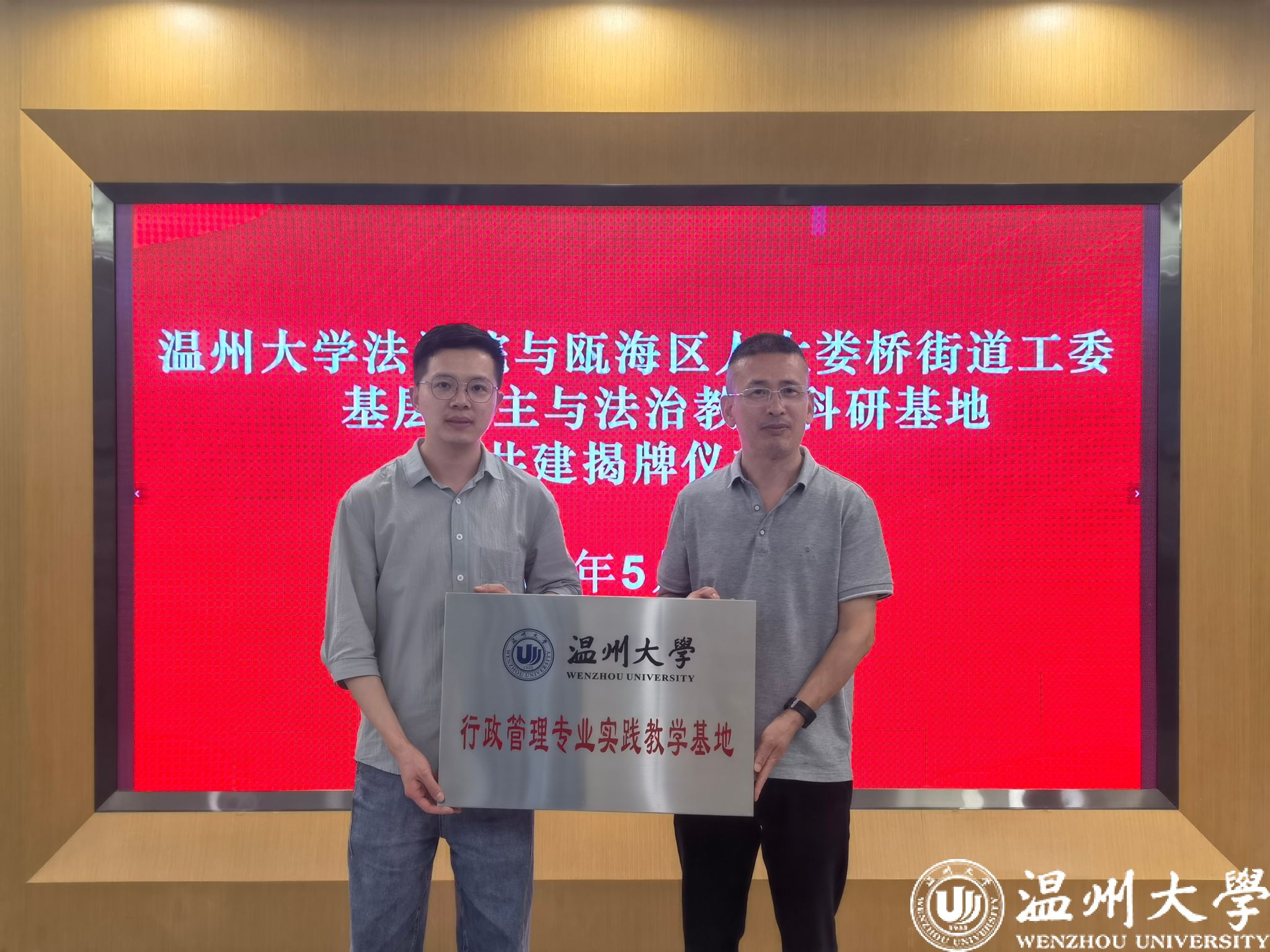 为深化校地合作,赋能基层民主与法治,5月23日下午,看片狂人 院长王宗正、学术副院长张鹏、培训中心副主任范兴科、国家安全教育教研室副主任常飞以及看片狂人 公共政策研究中心秘书长林传学等一行赴温州市瓯海区娄桥街道人大代表联络站考察交流,并进行看片狂人 实践教学基地合作协议签约仪式,为共建MPA研究生、行政管理专业本科生实践教学基地以及公共政策研究中心研究实践基地授牌,推动看片狂人 与瓯海区娄桥街道校地合作基础走深走实。瓯海区人大常委会副主任周金平、瓯海区人大监察和法治司法工委主任张崇华出席活动,娄桥街道党工委书记陶琼伟,娄桥街道人大工委主任林胜国、副主任李云岳等陪同。