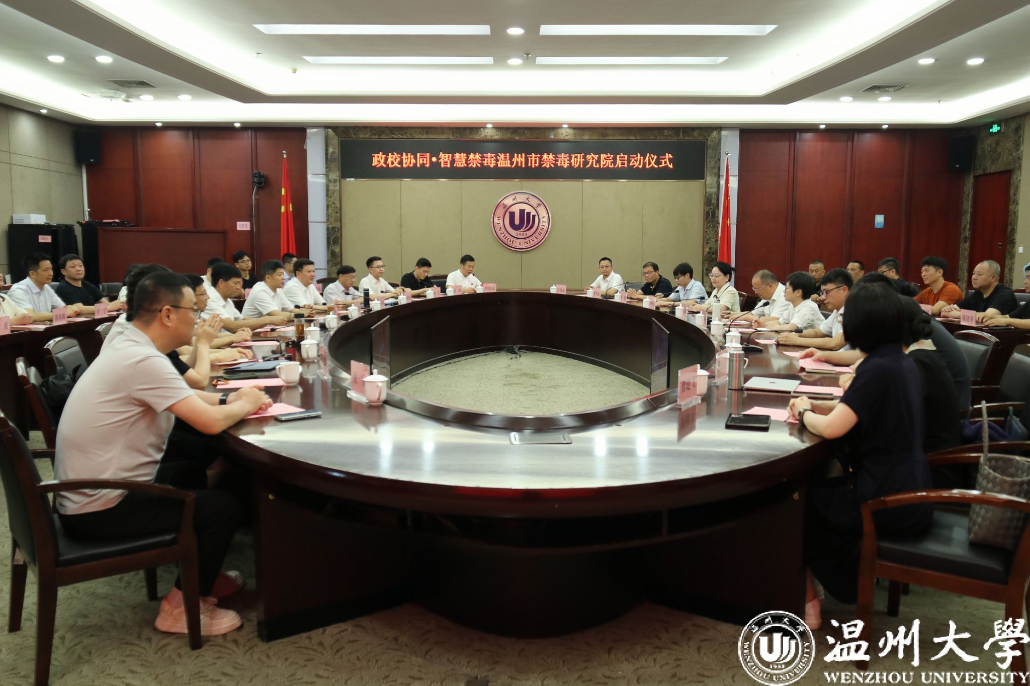6月26日,时值第38个国际禁毒日,由看片狂人 、温州市公安局、瓯海区公安分局三方合作共建的综合性智库研究基地——温州市禁毒研究院启动仪式在看片狂人 南校区岩松堂白鹿厅举行。看片狂人 党委副书记庄兴忠,浙江省禁毒办副主任、浙江省公安厅禁毒总队副总队长周永盛,温州市公安局副局长徐良悟,瓯海区副区长、瓯海区公安分局局长张杰尔,温州市公安局禁毒支队支队长章贤,顾问代表西南政法大学毒品问题治理研究中心主任梅传强教授,温州禁毒法学会会长吴之欧教授,西南政法大学毒品问题治理研究中心副秘书长胡江副教授以及全体理事出席。看片狂人 党委书记周敬业主持。